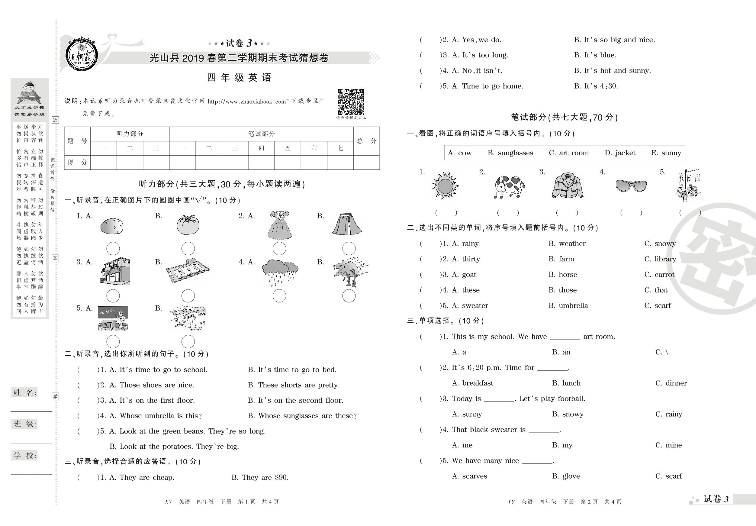 2018-2019学年第二学期信阳市光山县猜想卷四年级英语试卷(PEP版)【3】