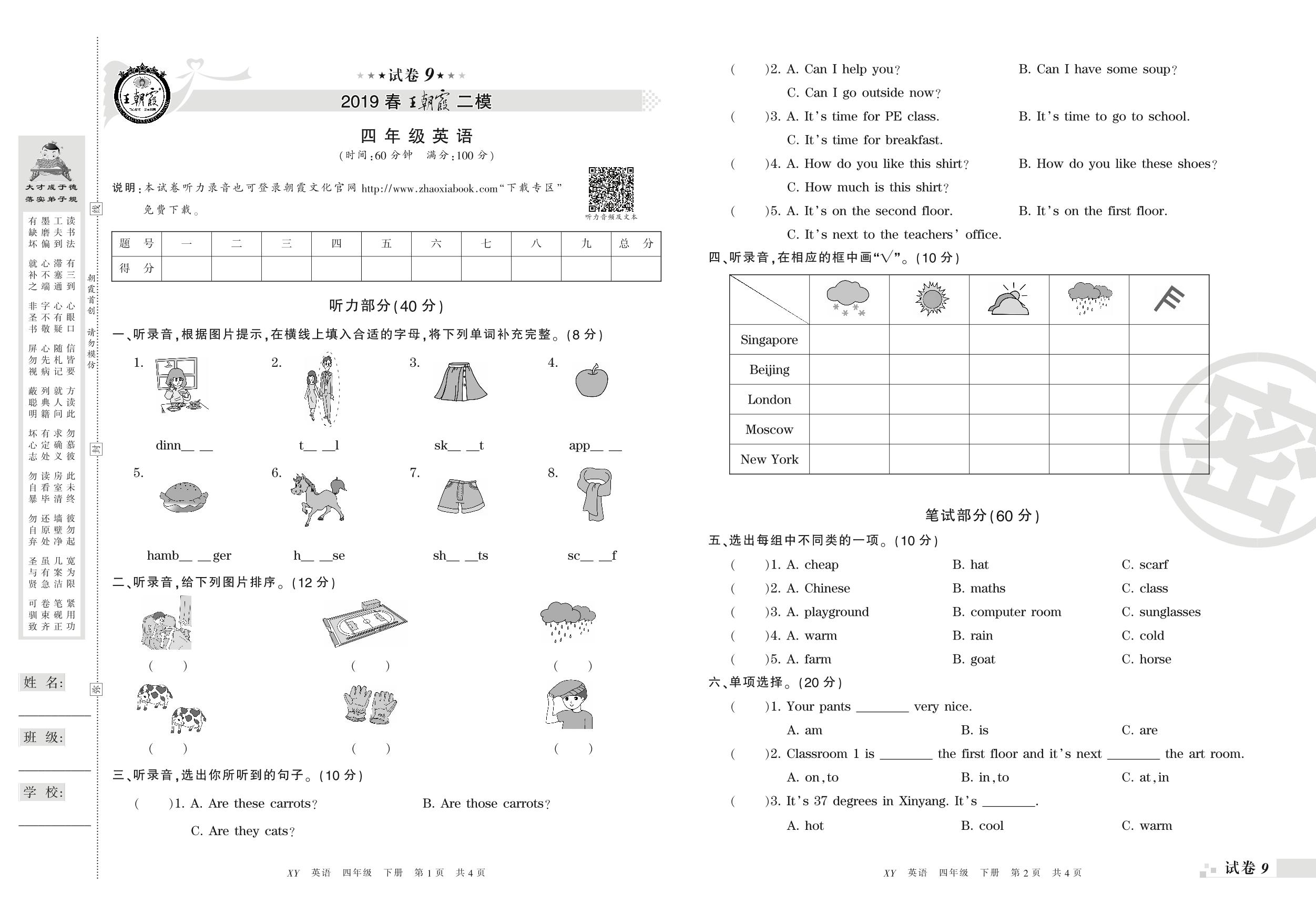 王朝霞期末模拟卷四年级下册英语(PEP版)_R21080794552【9】