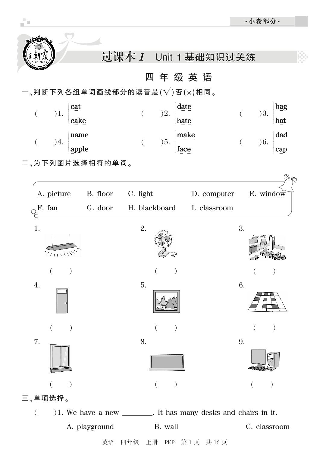 王朝霞期末过课本四年级上册英语(PEP版)_R21080794557【0】