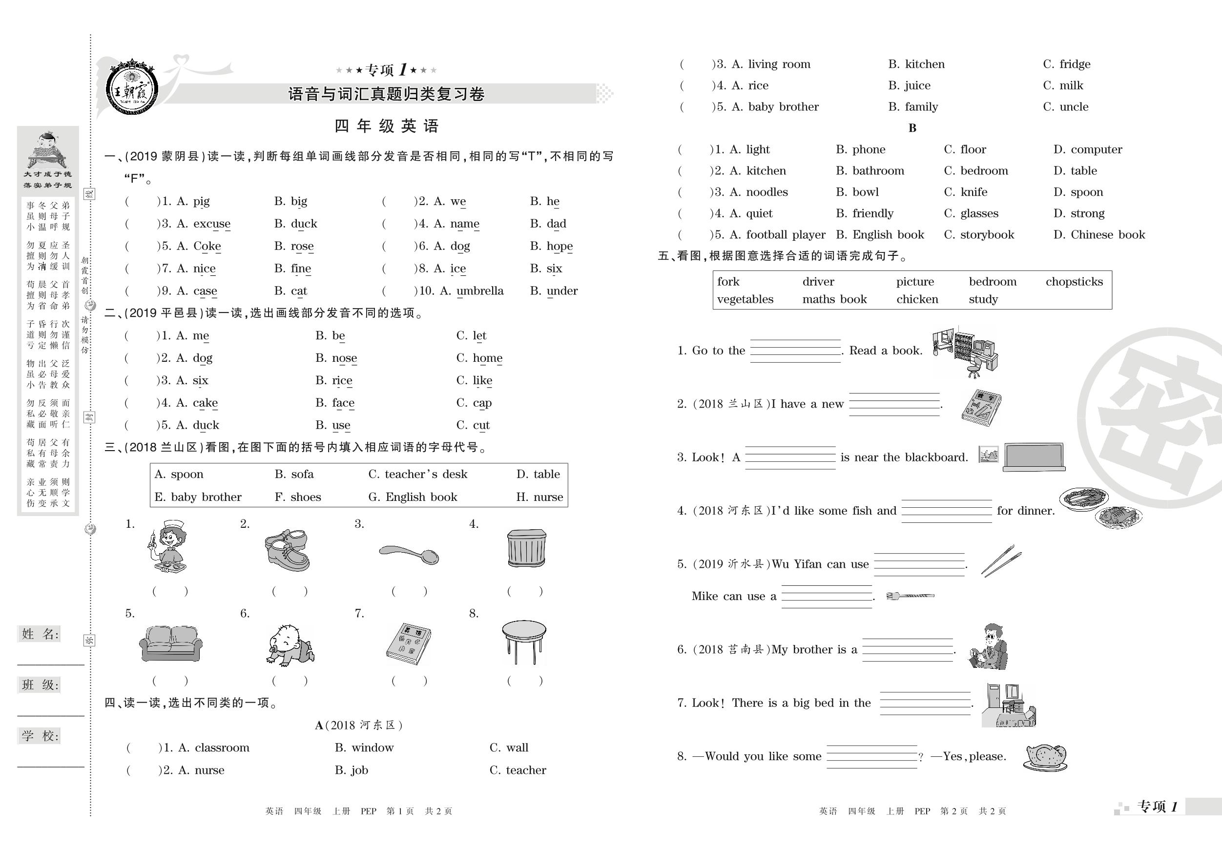 王朝霞期末专项卷——语音与词汇、句子真题归类复习四年级上册英语(PEP版)_R21080794604【0】