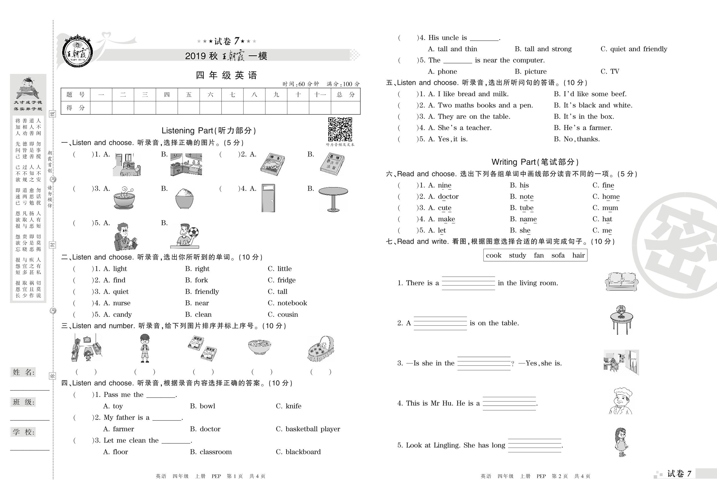 王朝霞期末模拟卷四年级上册英语(PEP版)_R21080794639【7】