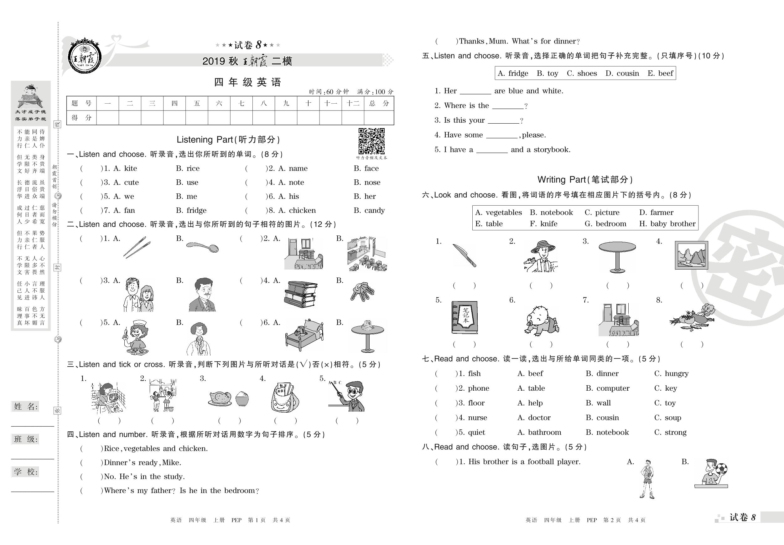 王朝霞期末模拟卷四年级上册英语(PEP版)_R21080794643【8】