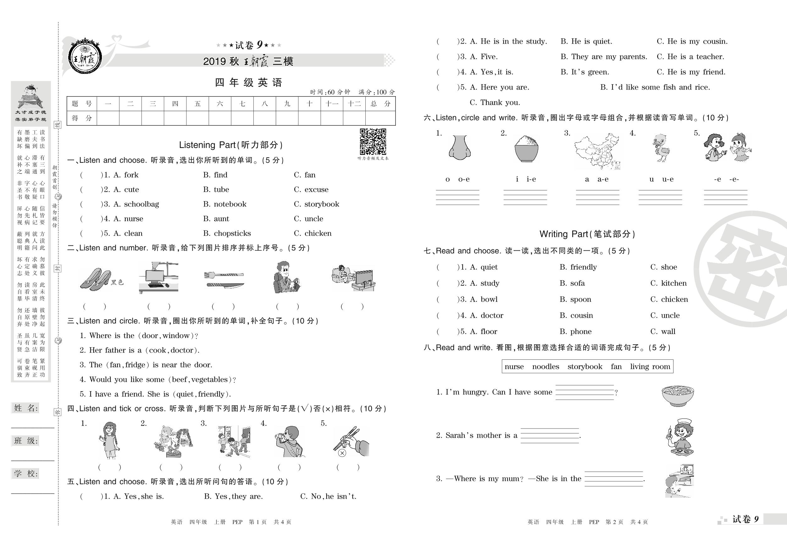 王朝霞期末模拟卷四年级上册英语(PEP版)_R21080794648【9】