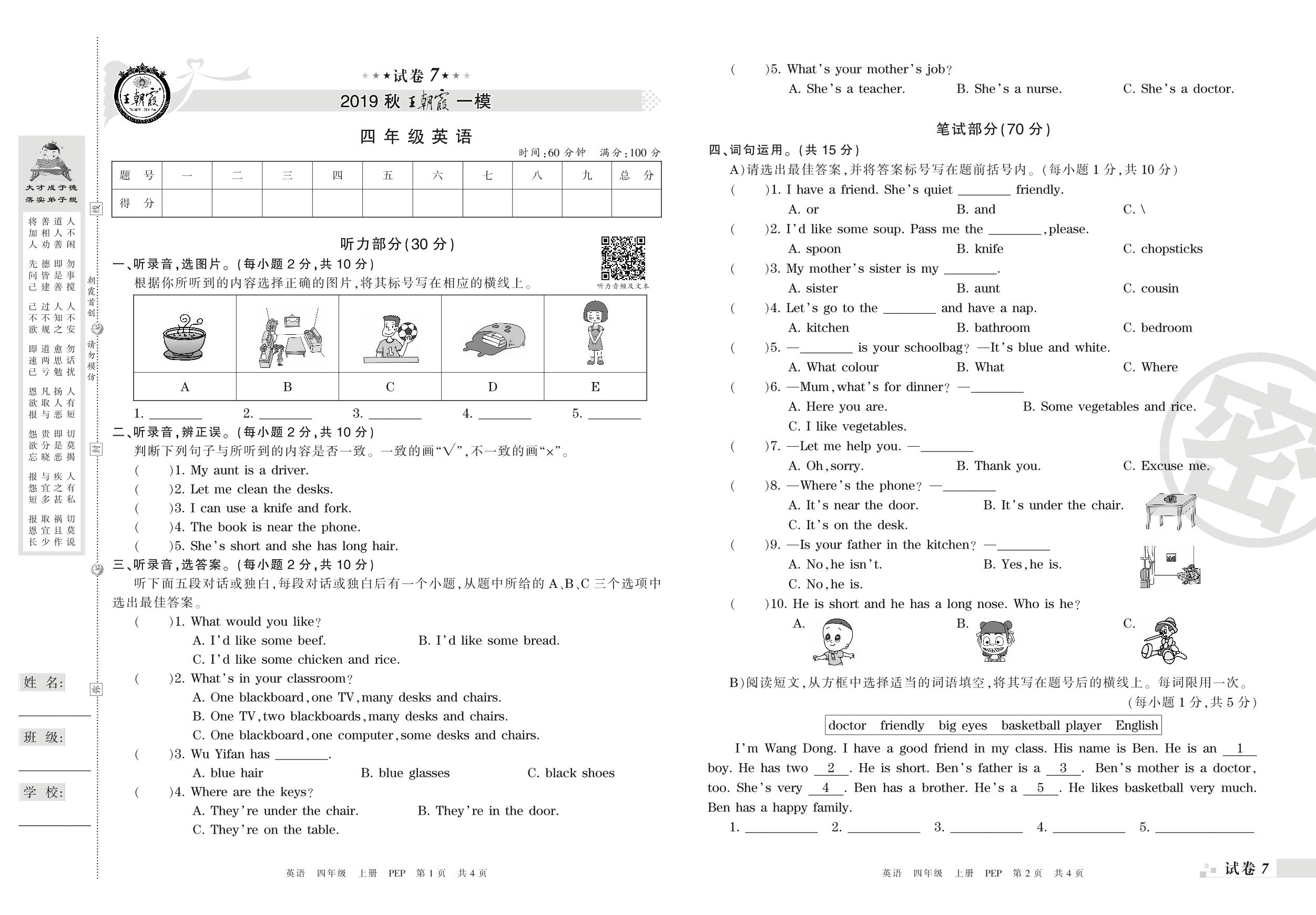 王朝霞期末模拟卷四年级上册英语(PEP版)_R21080795203【7】