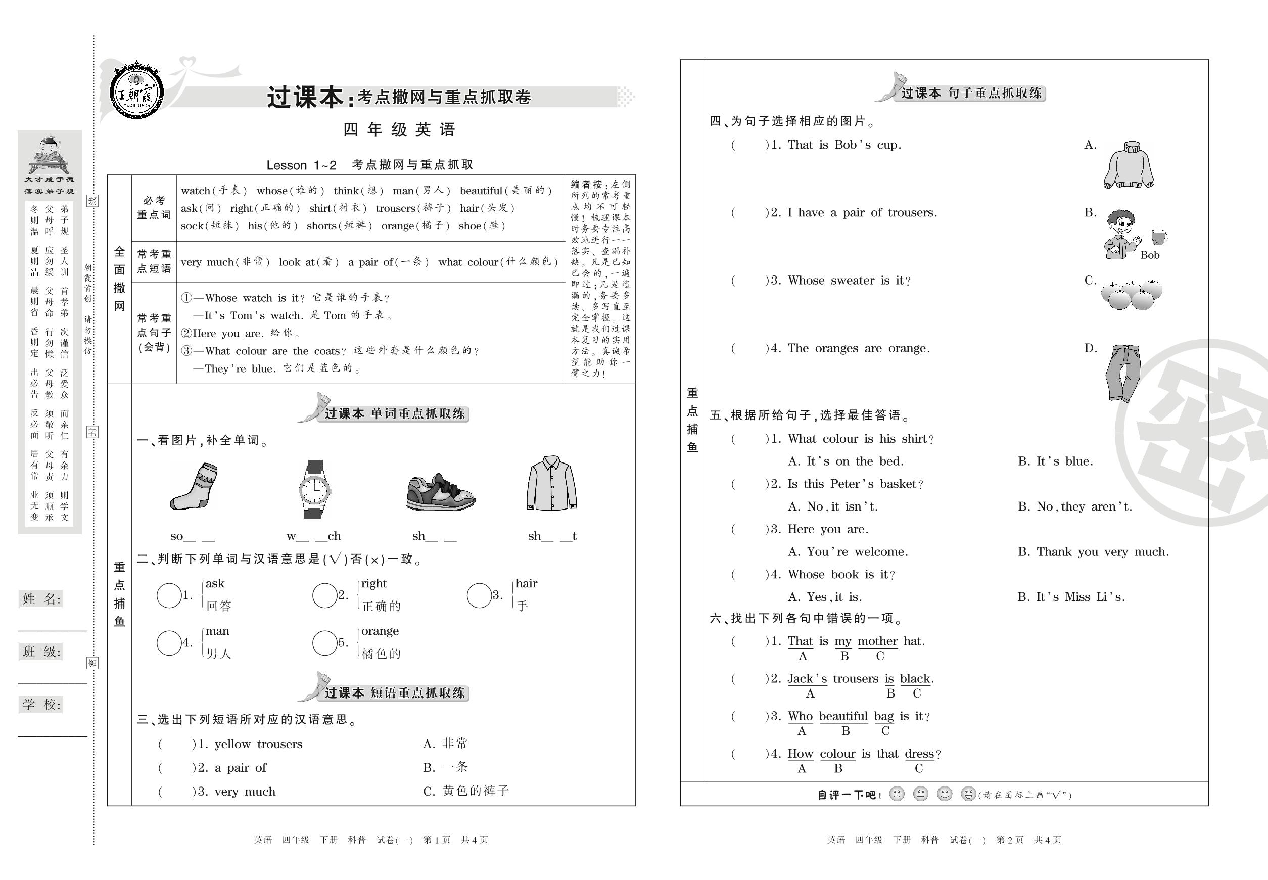 王朝霞期末过课本四年级下册英语(科普版)_R21080795258【0】