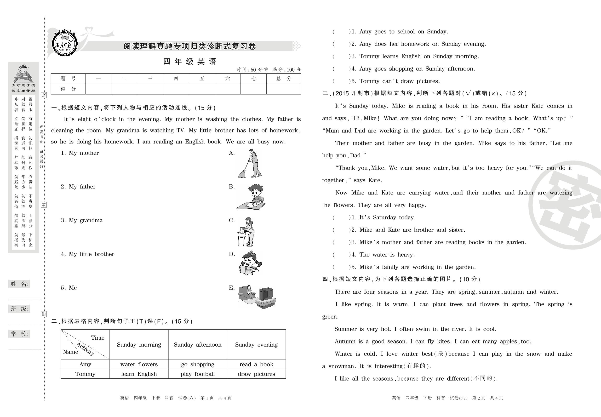 王朝霞期末专项卷四年级下册英语(科普版)_R21080795309【6】