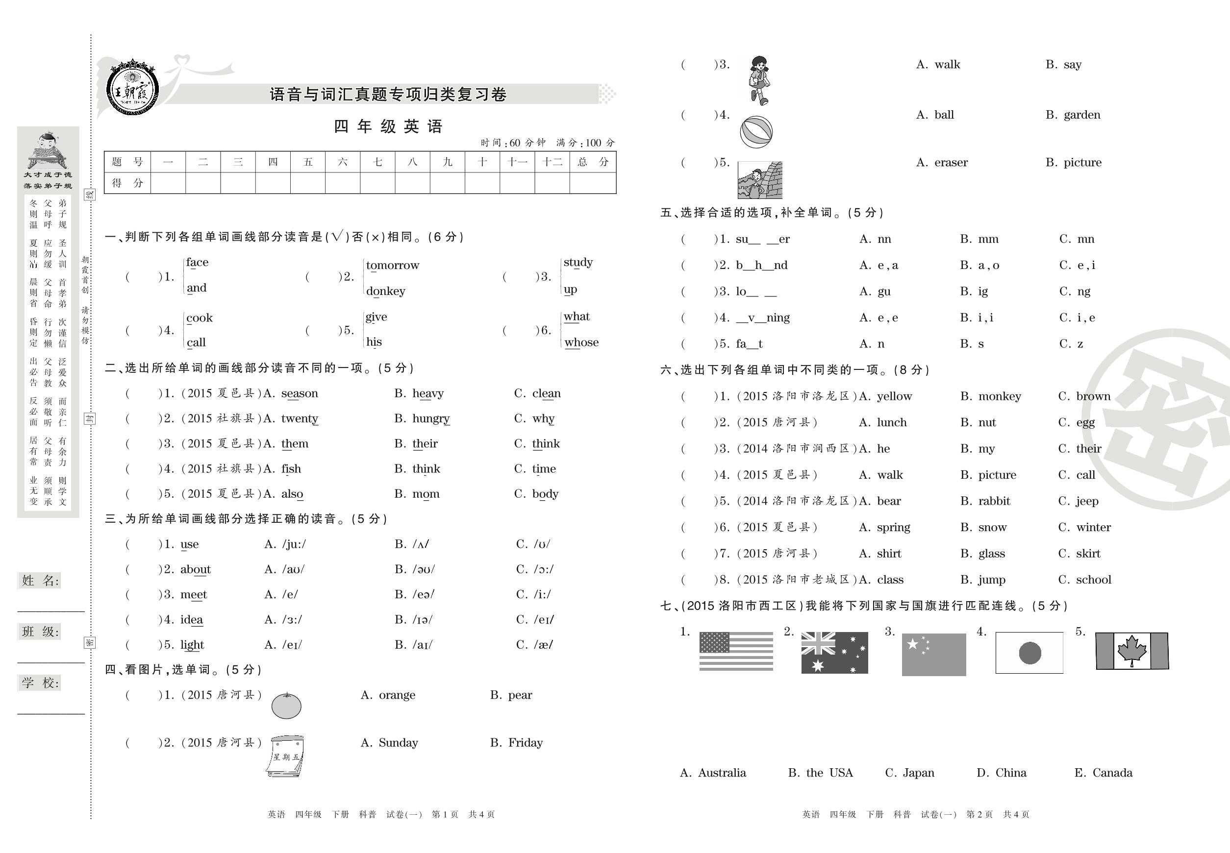 王朝霞期末专项卷四年级下册英语(科普版)_R21080795339【1】