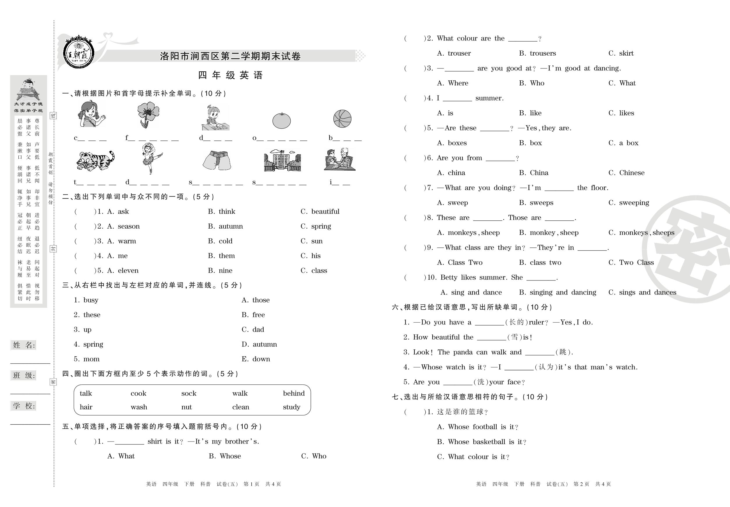 2015-2016学年第二学期洛阳市涧西区四年级英语试卷(科普版)【5】