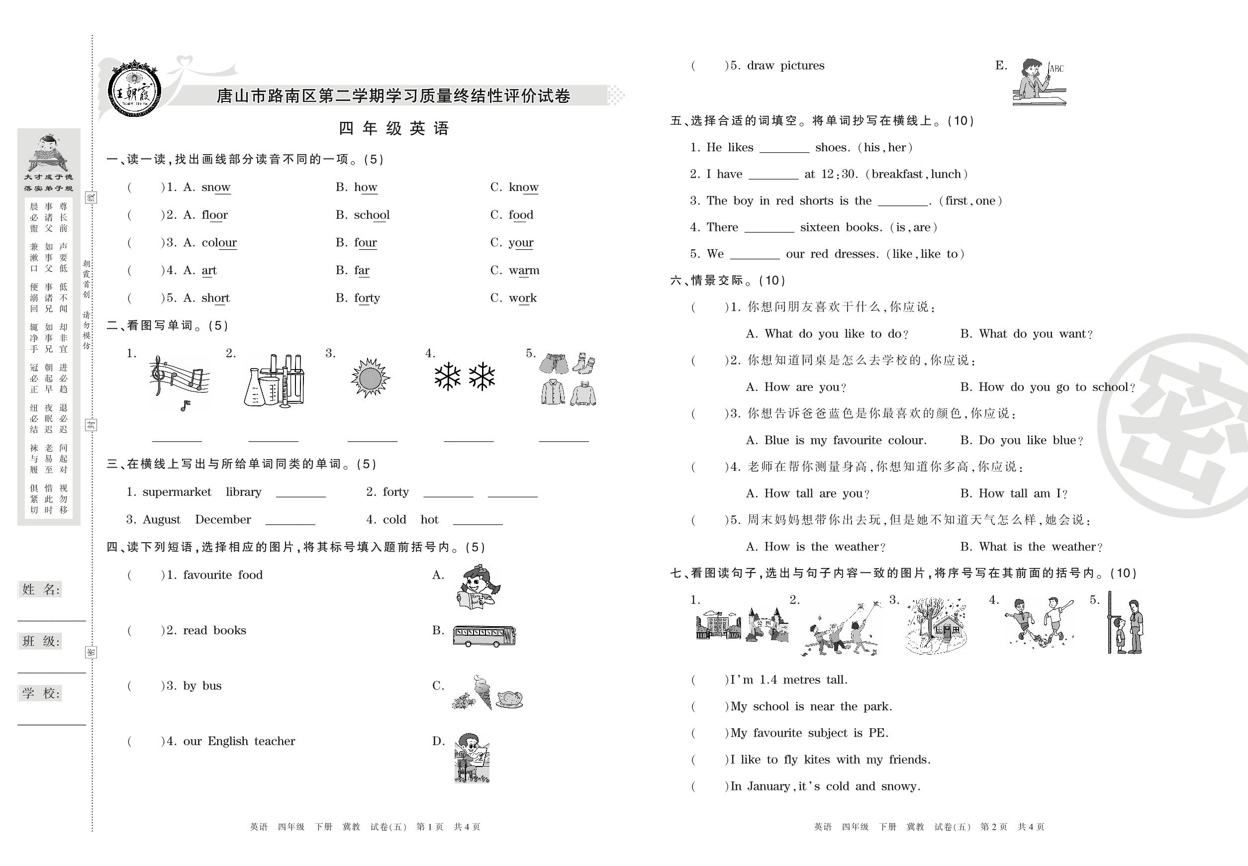 2015-2016学年第二学期唐山市路南区四年级英语试卷(冀教版)【5】