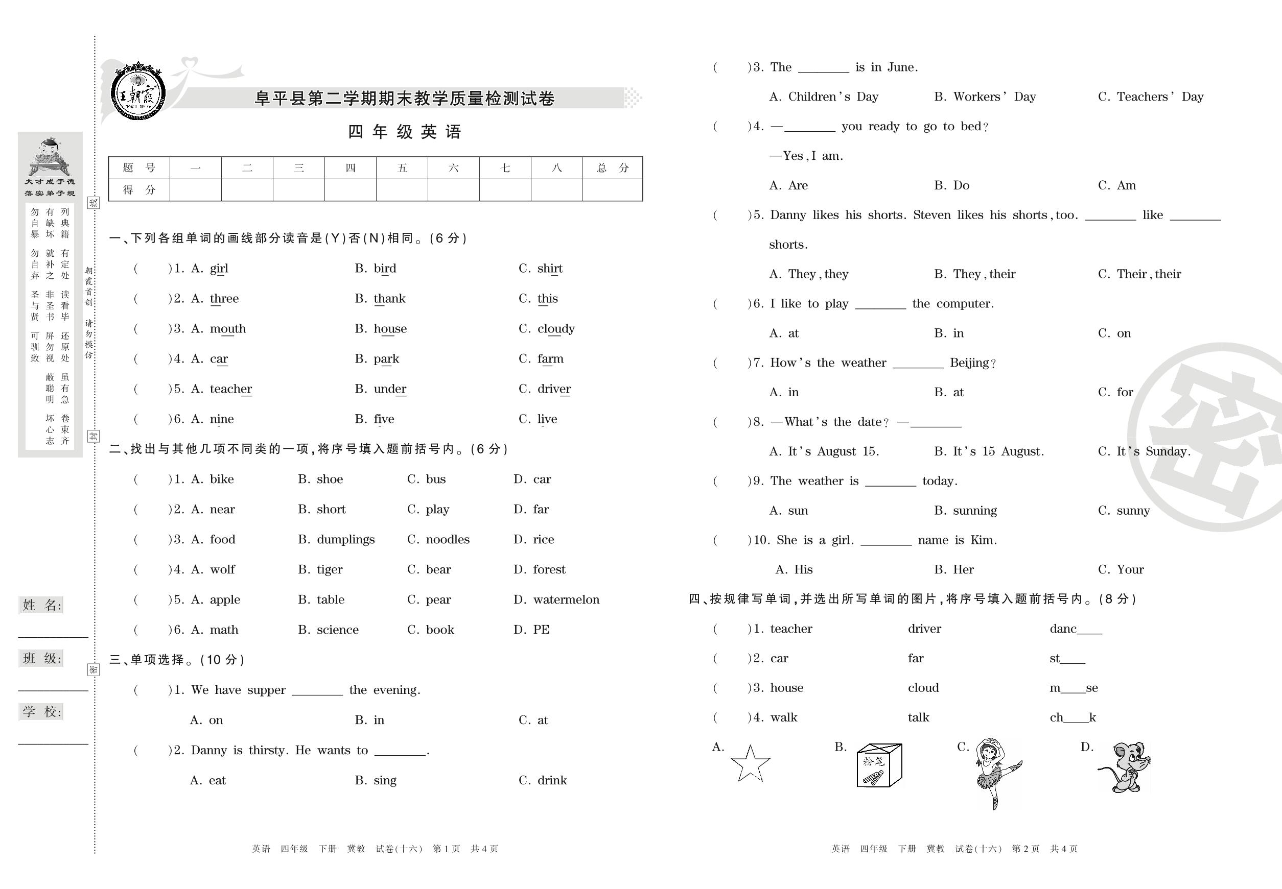 2015-2016学年第二学期保定市阜平县四年级英语试卷(冀教版)【16】