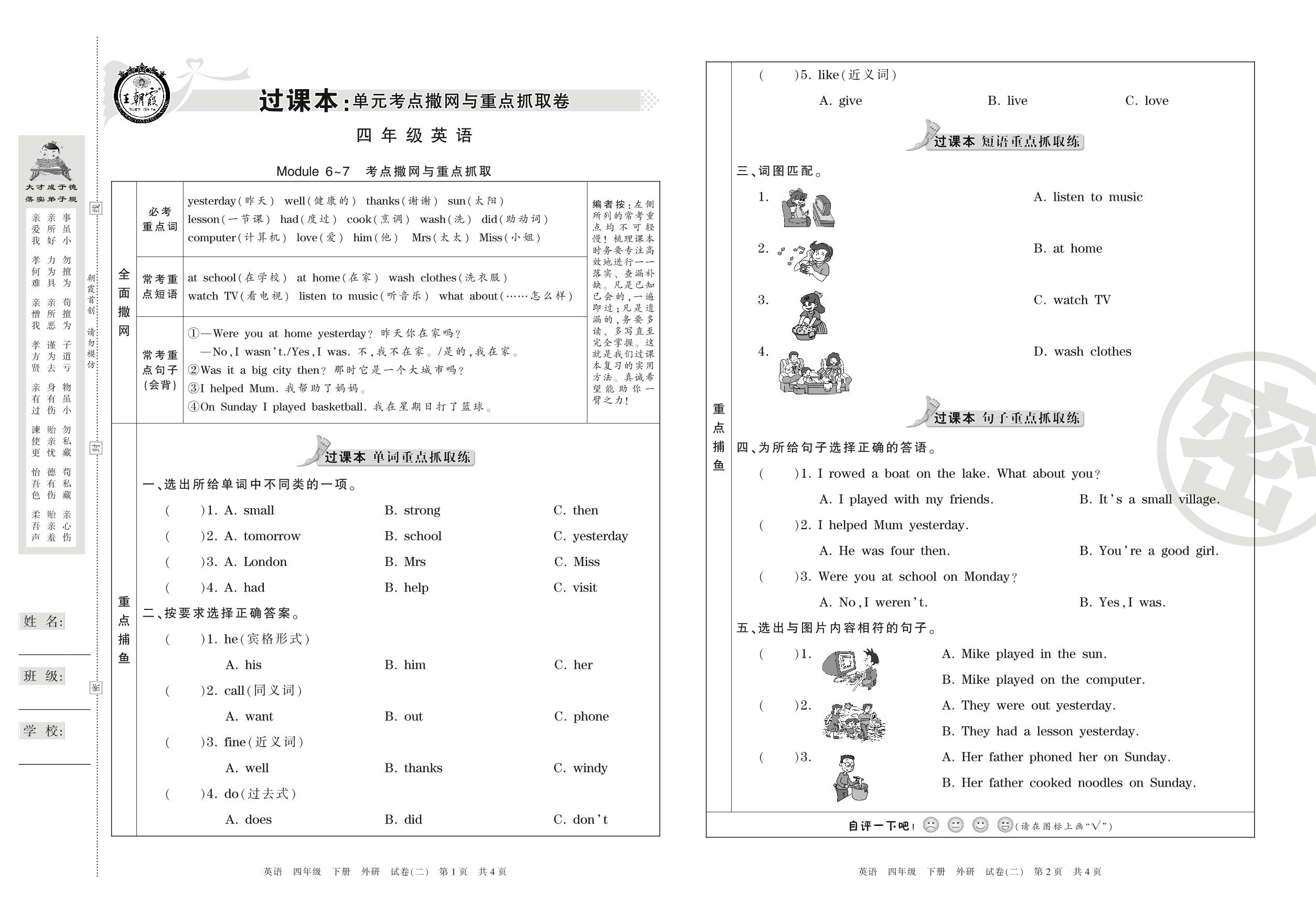 王朝霞期末过课本四年级下册英语(外研版)_R21080795644【2】