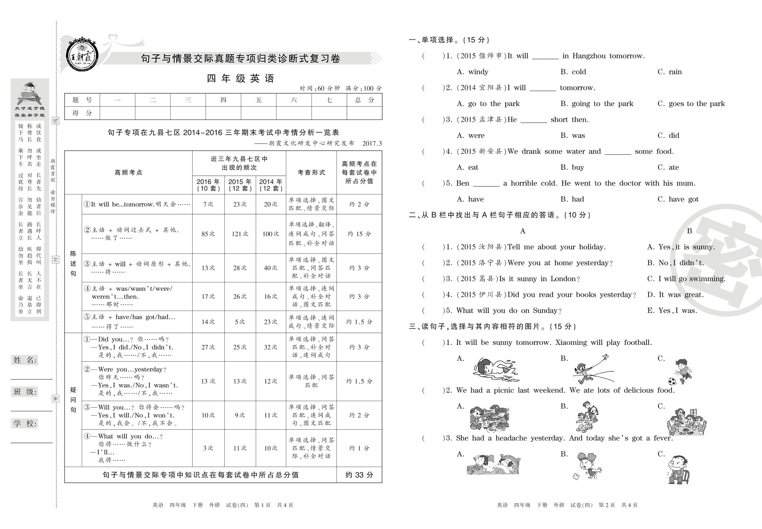 王朝霞期末专项卷四年级下册英语(外研版)_R21080795650【4】