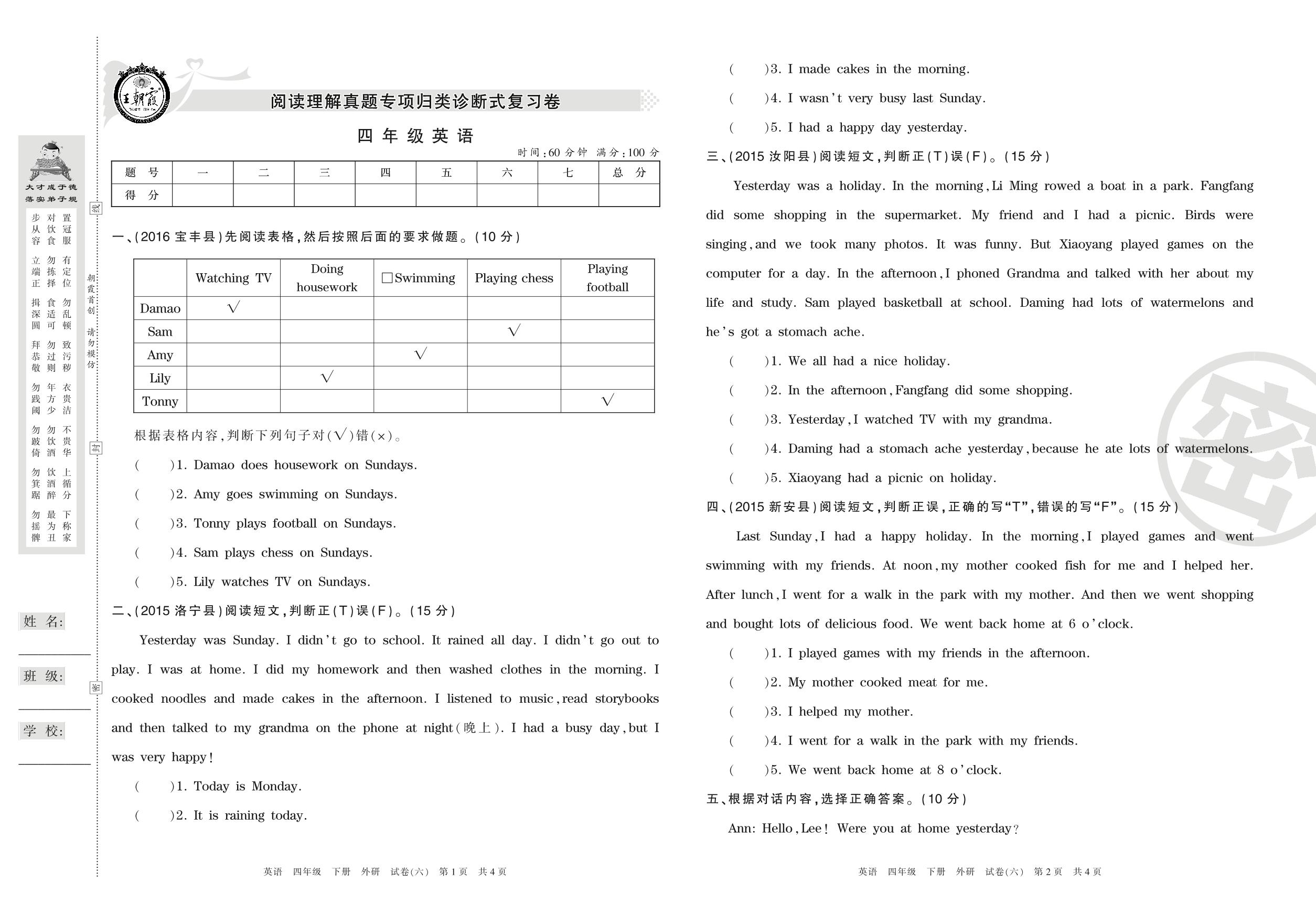 王朝霞期末专项卷四年级下册英语(外研版)_R21080795657【6】