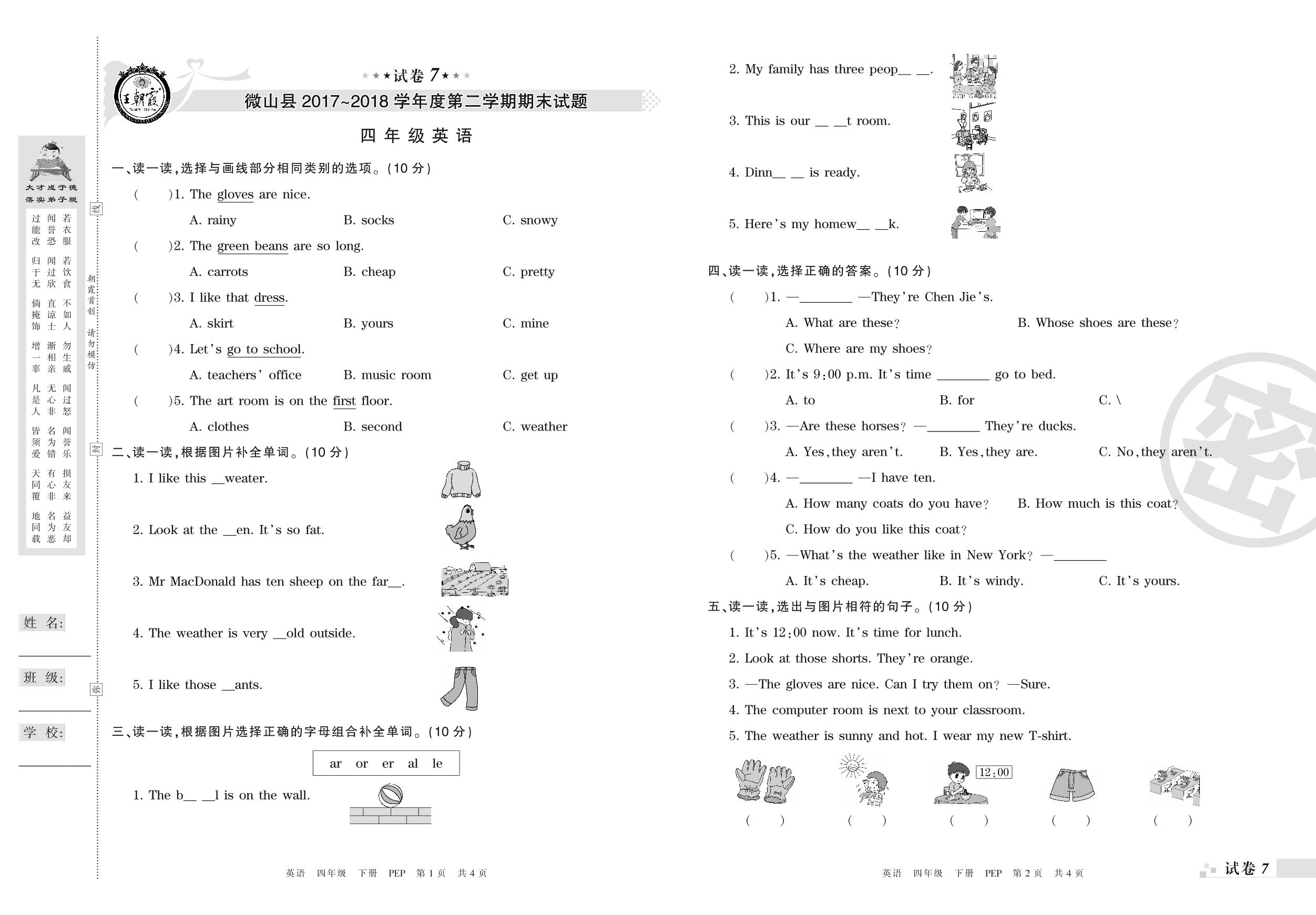 2017-2018学年第二学期济宁市微山县四年级英语试卷(PEP版)【7】