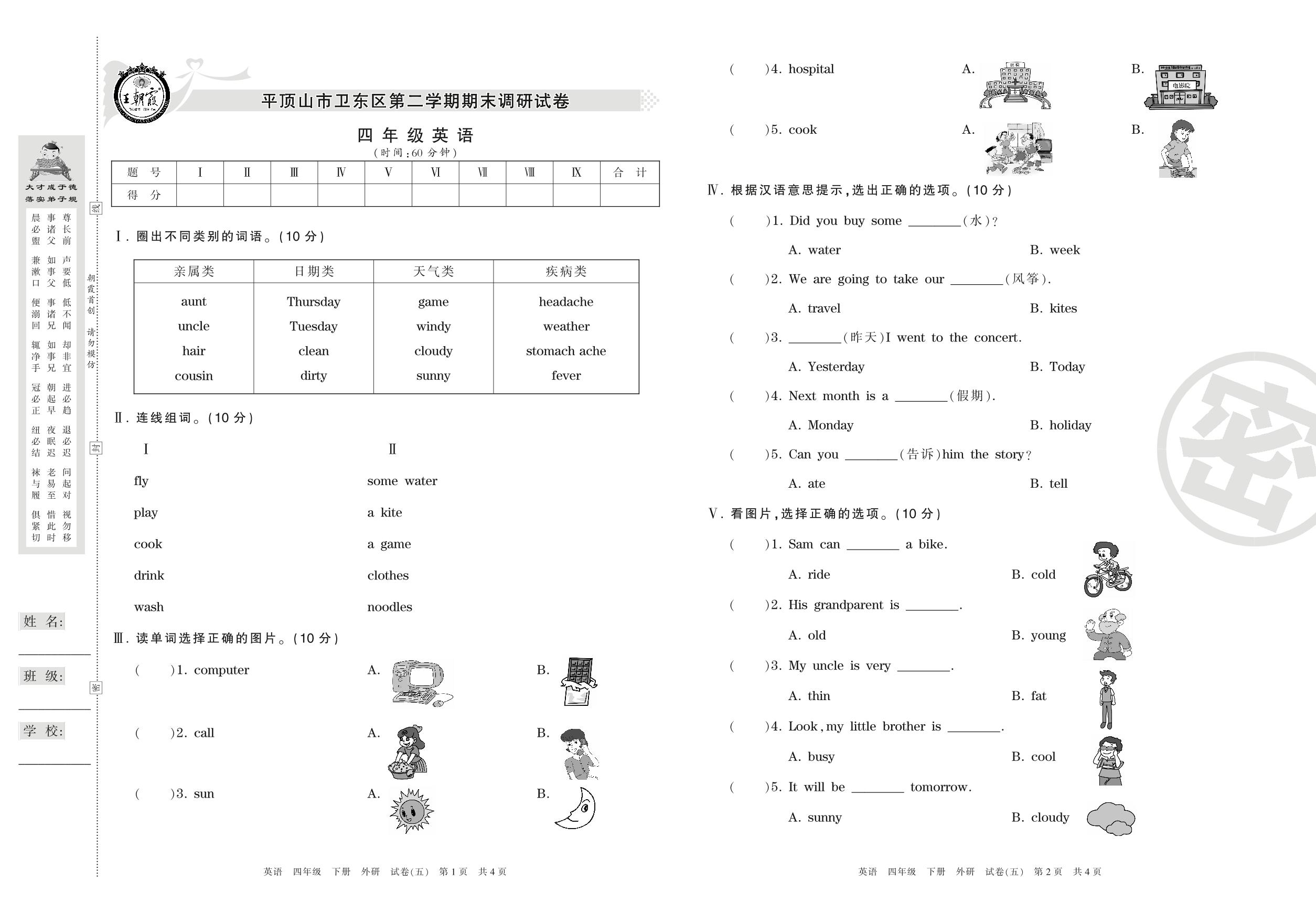 四年级英语外研版(三起始)下册期末卷