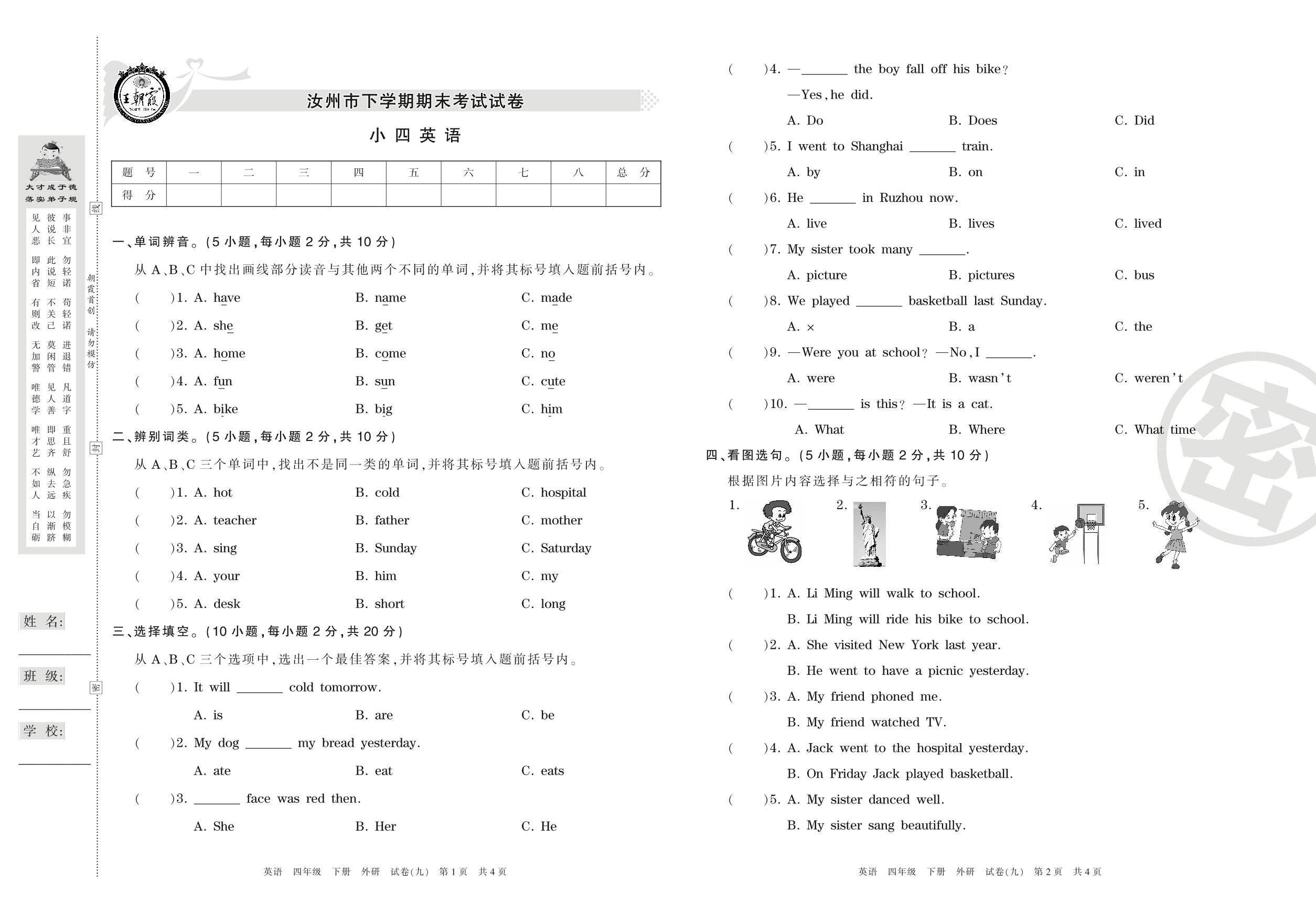 2015-2016学年第二学期汝州市四年级英语试卷(外研版)【9】