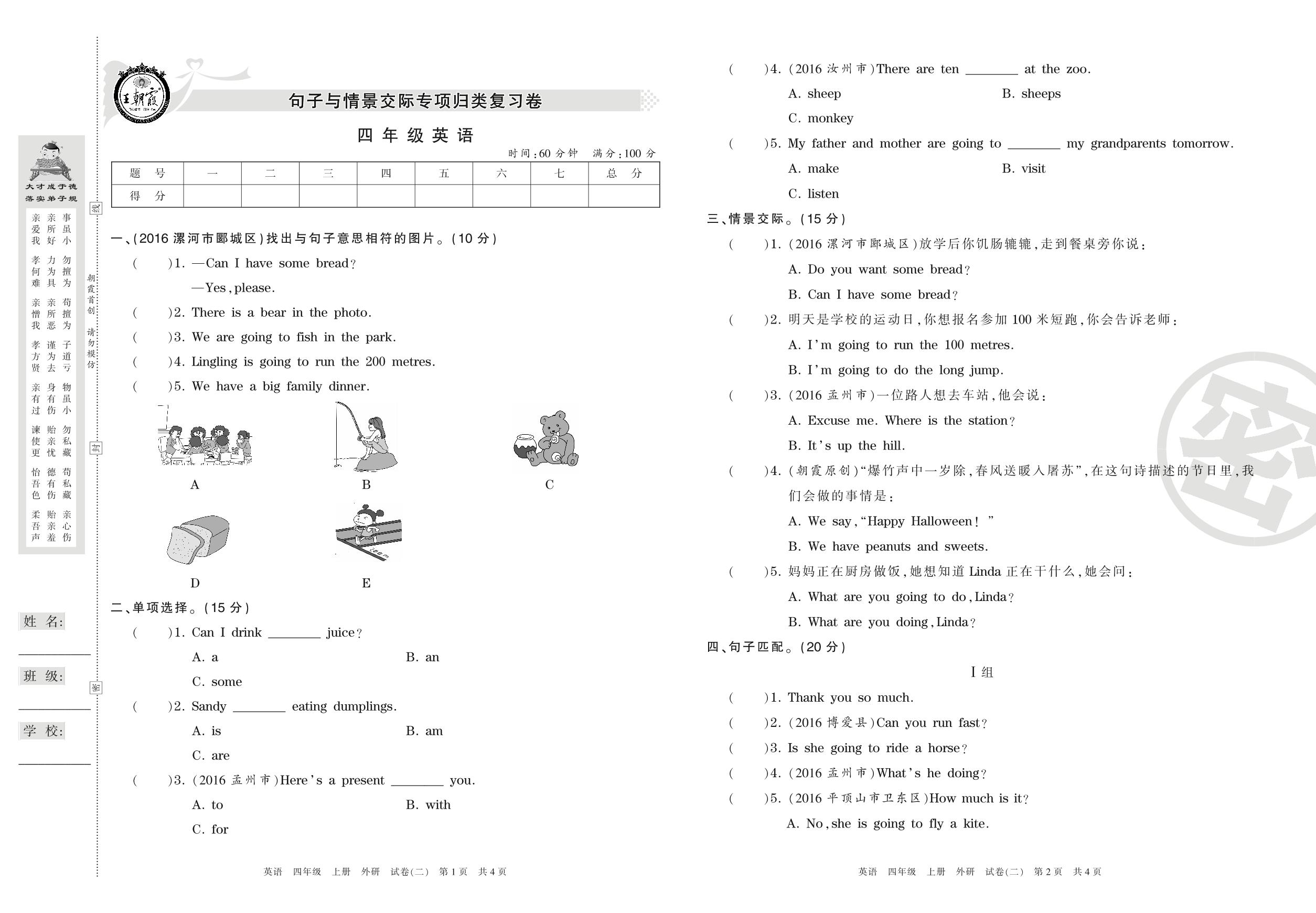 王朝霞期末专项卷四年级上册英语(外研版)【2】