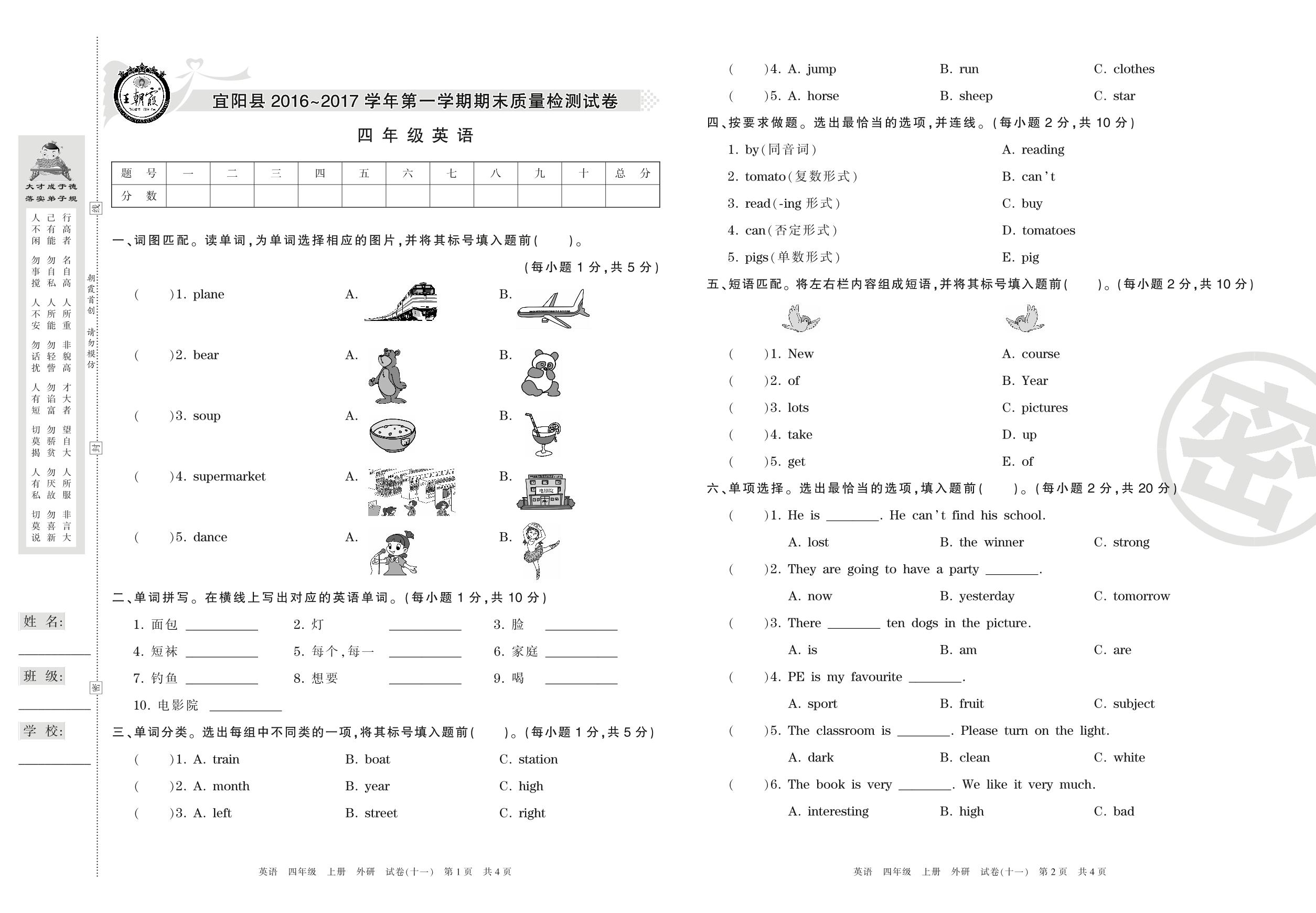 2016-2017学年第一学期洛阳市宜阳县四年级英语试卷(外研版)【11】