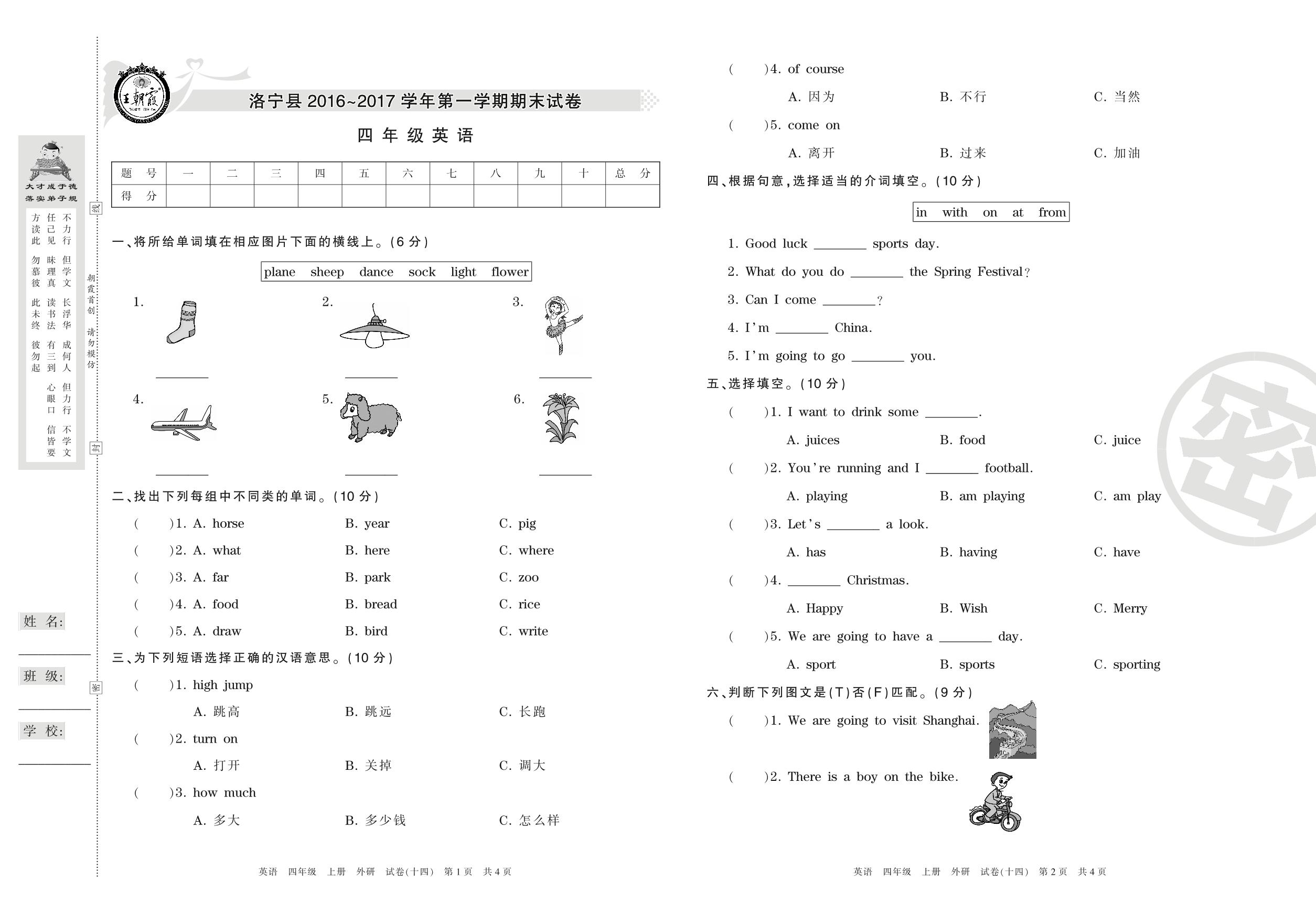 2016-2017学年第一学期洛阳市洛宁县四年级英语试卷(外研版)【14】