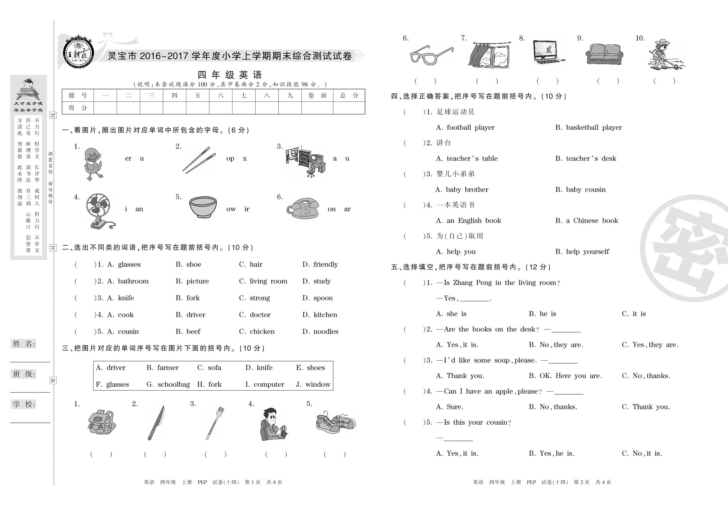 2016-2017学年第一学期灵宝市四年级英语试卷(PEP版)【14】