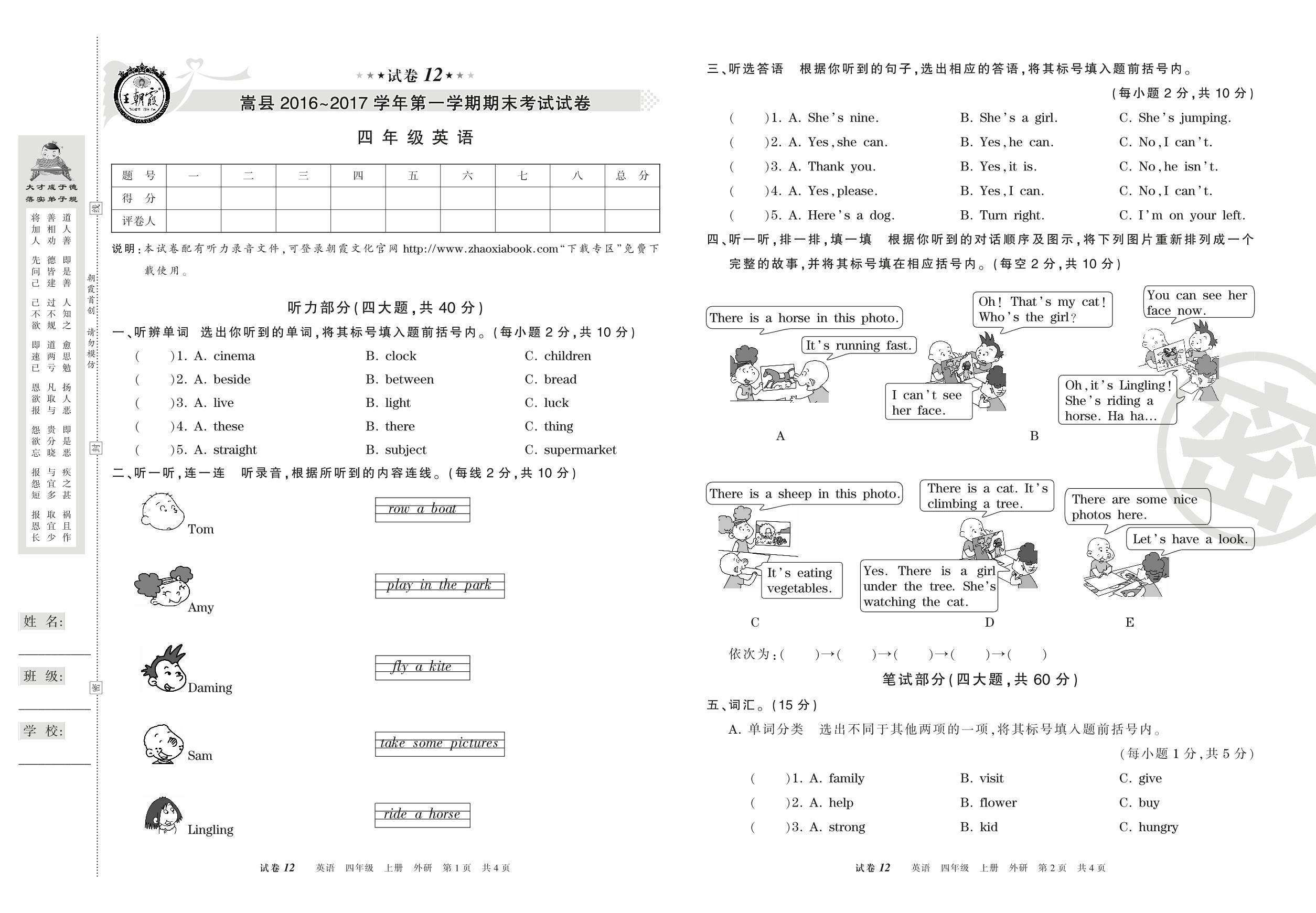 2016-2017学年第一学期洛阳市嵩县四年级英语试卷(外研版)【12】