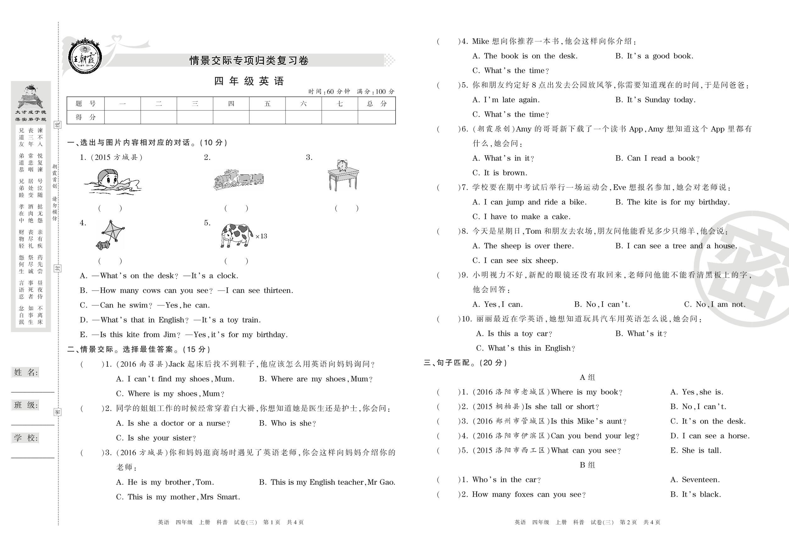 王朝霞期末专项卷四年级上册英语(科普版)_R210807100943【3】