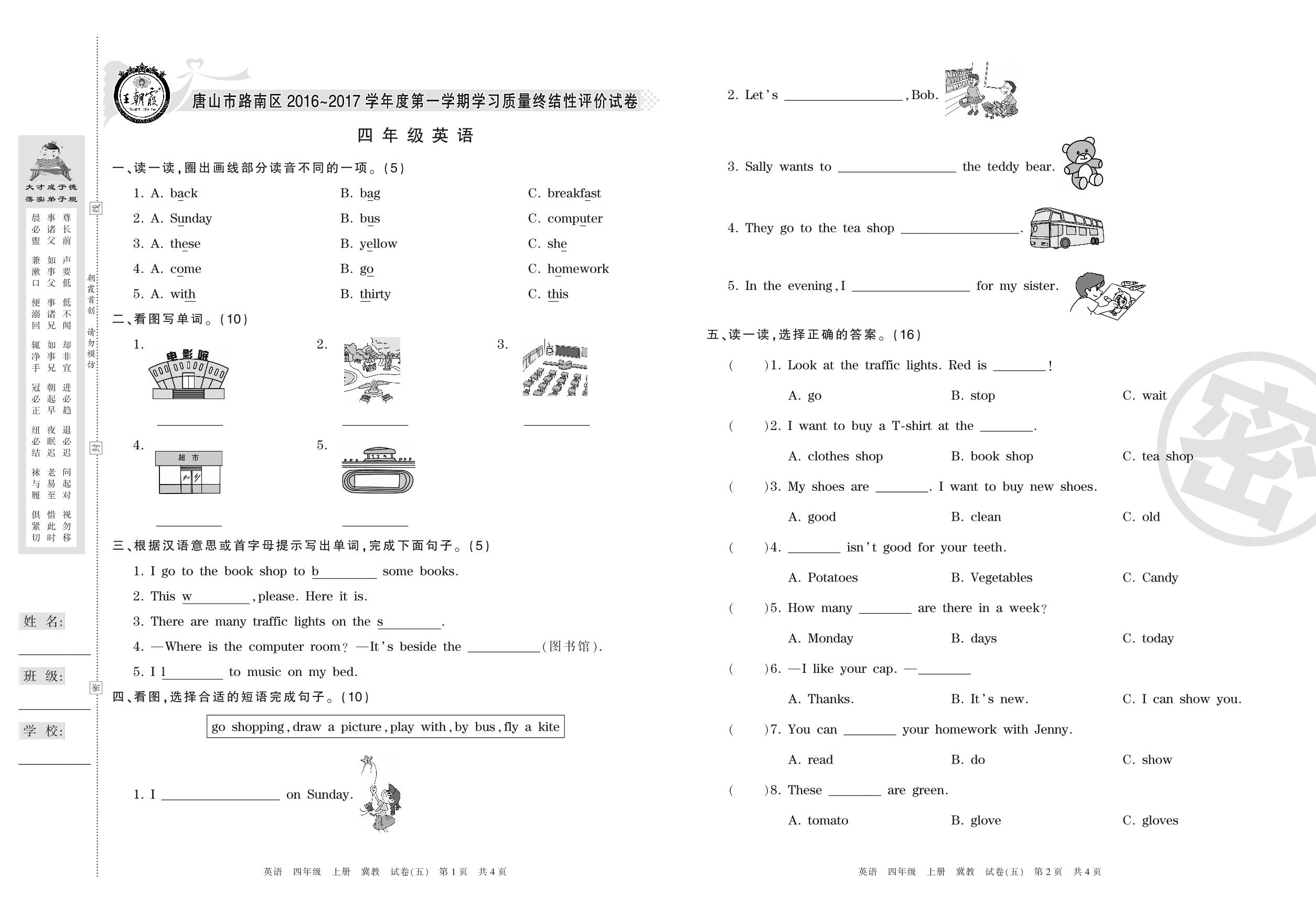 2016-2017学年第一学期唐山市路南区四年级英语试卷(冀教版)【5】