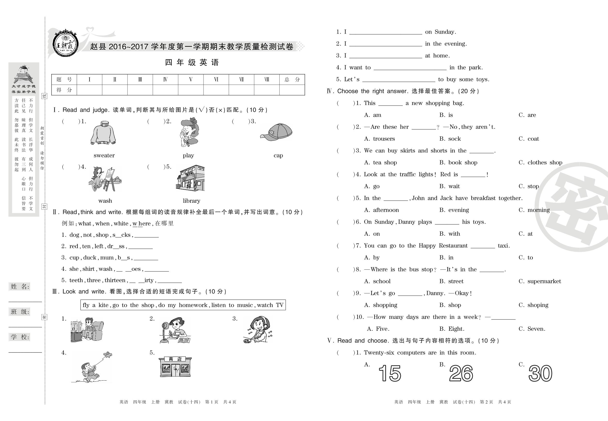 2016-2017学年第一学期石家庄市赵县四年级英语试卷(冀教版)【14】