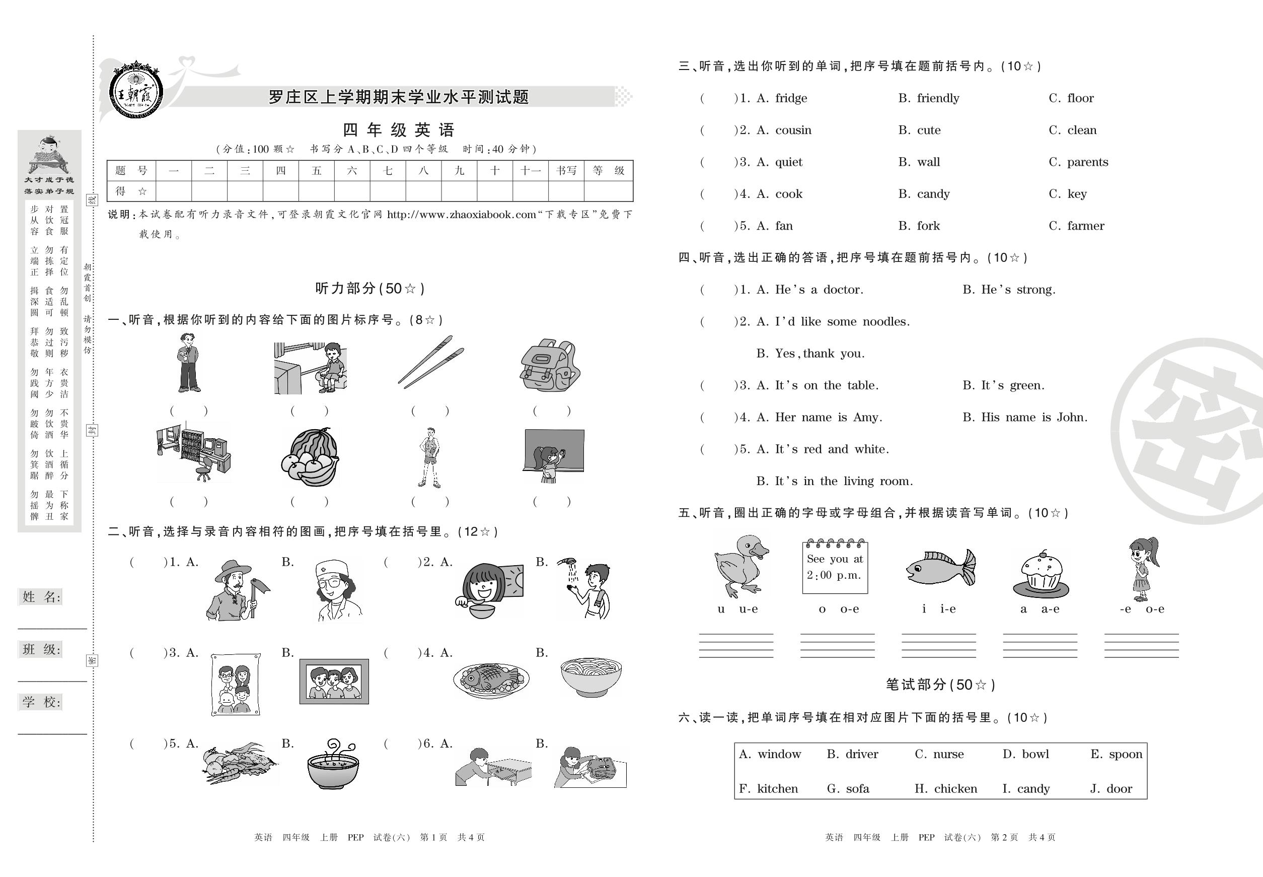 2016-2017学年第一学期临沂市罗庄区四年级英语试卷(PEP版)【6】