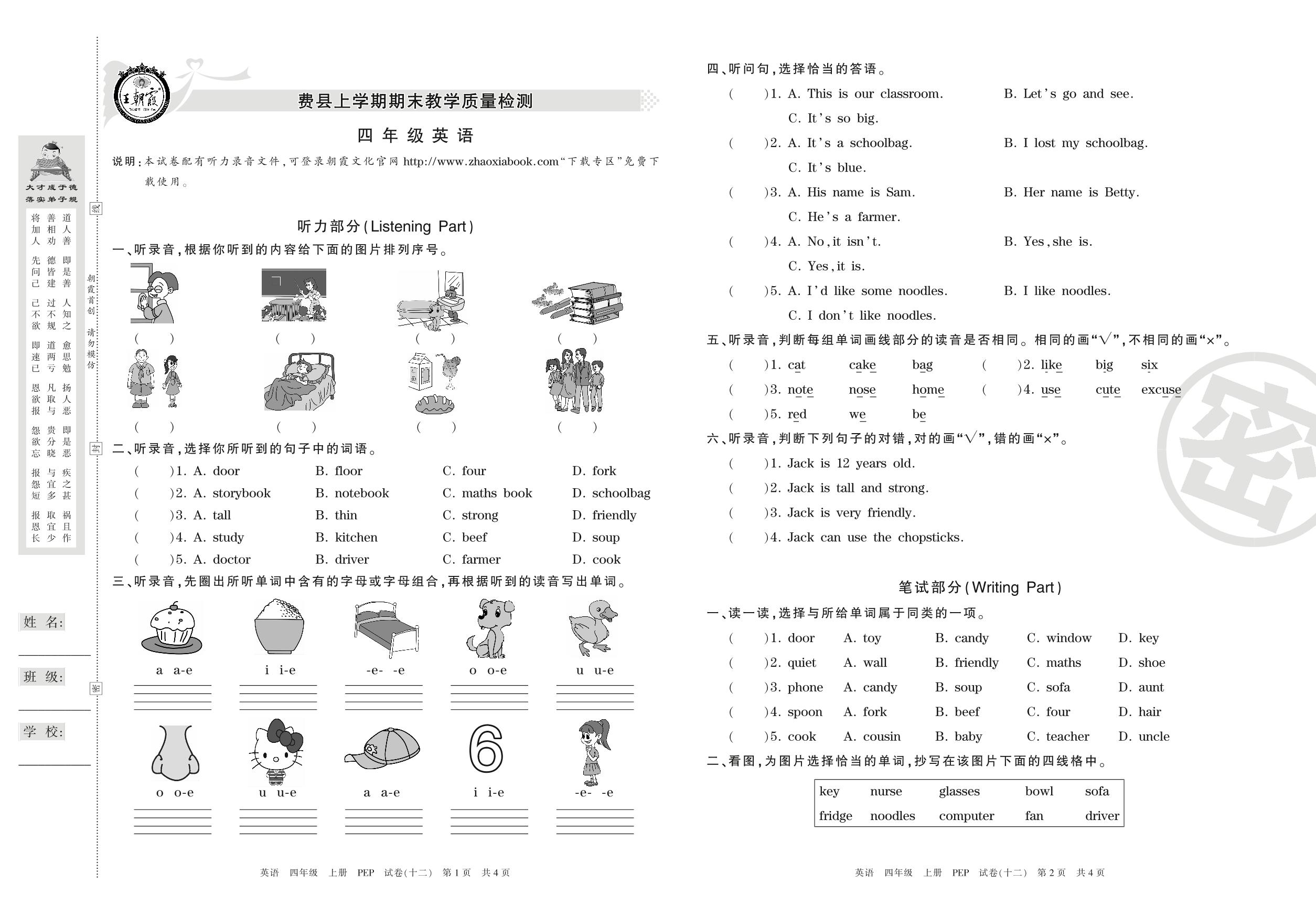 2016-2017学年第一学期临沂市费县四年级英语试卷(PEP版)【12】