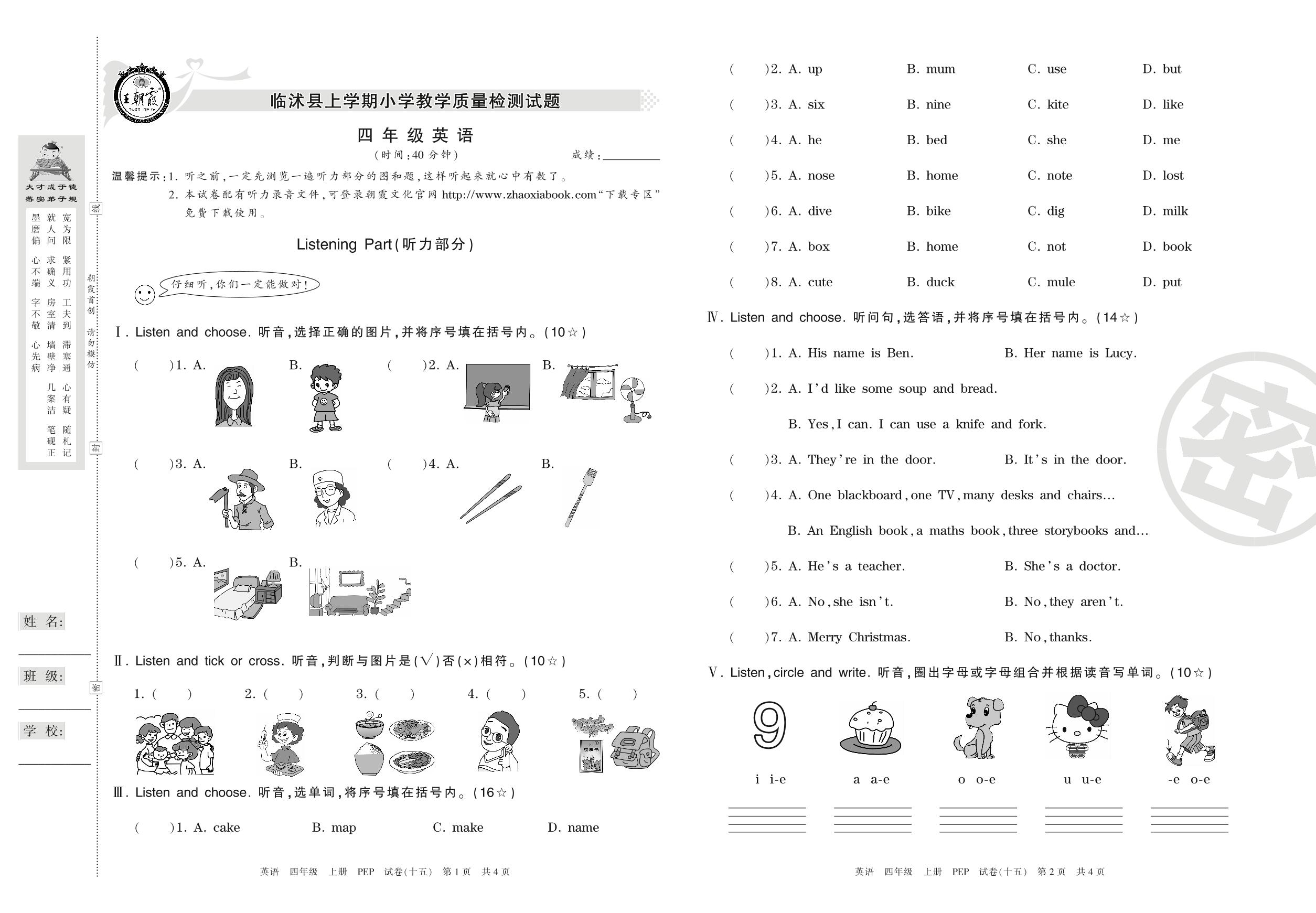 2016-2017学年第一学期临沂市临沭县四年级英语试卷(PEP版)【15】