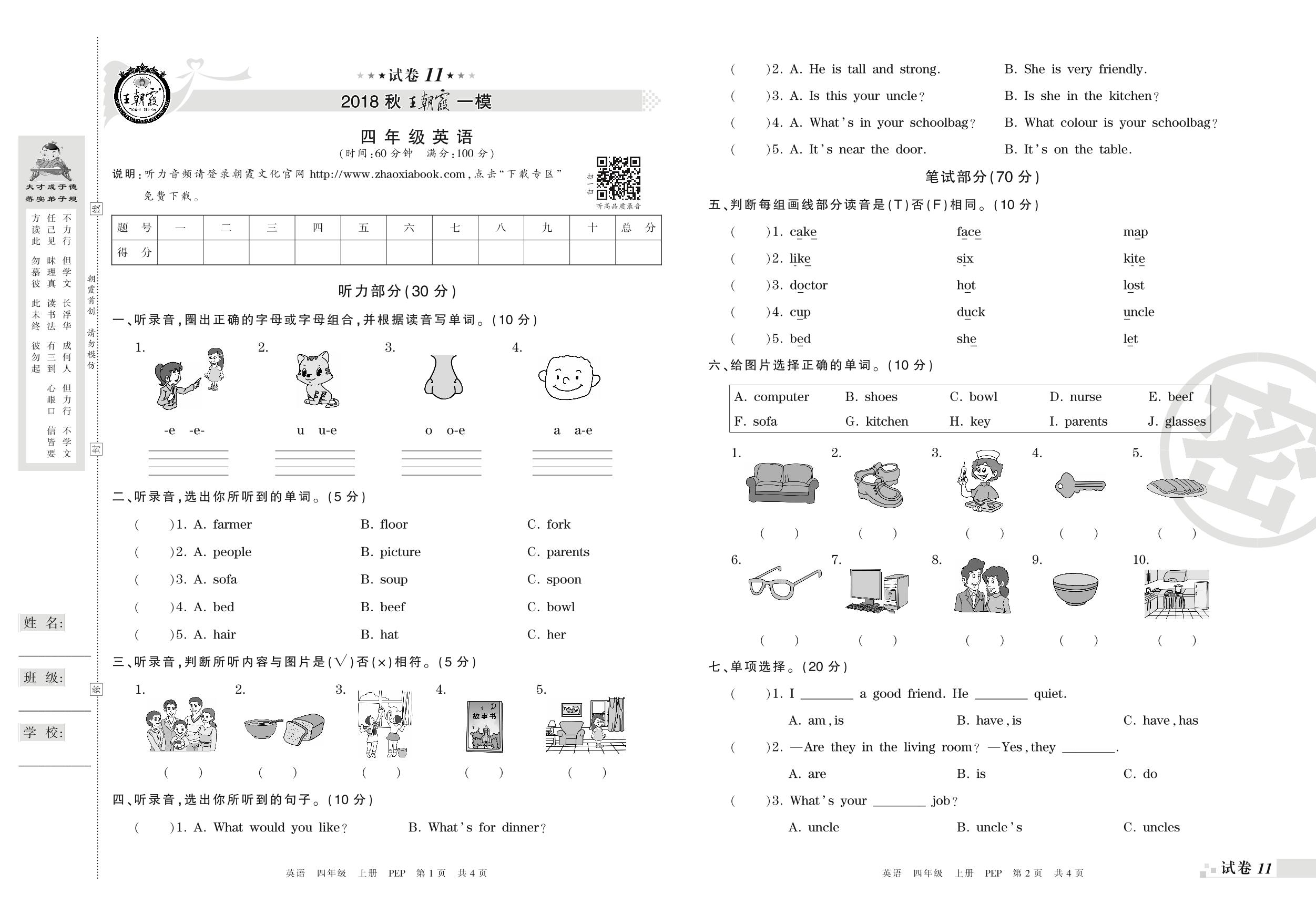 王朝霞期末模拟卷四年级上册英语(PEP版)_R210807101533【11】