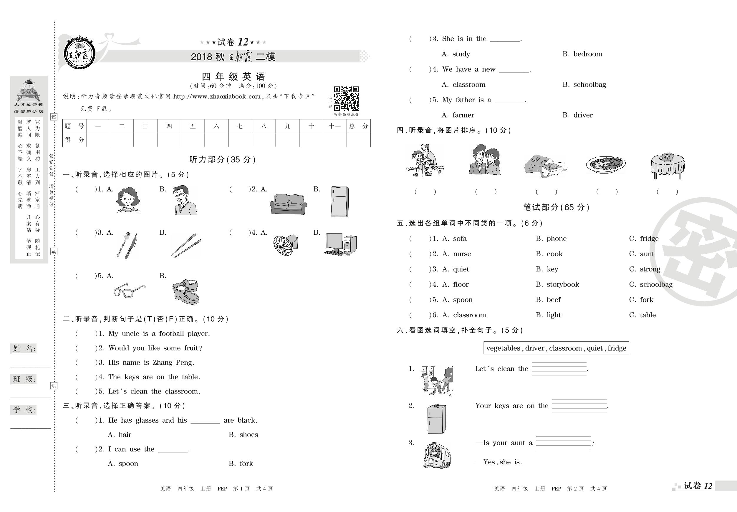 王朝霞期末模拟卷四年级上册英语(PEP版)_R210807101539【12】