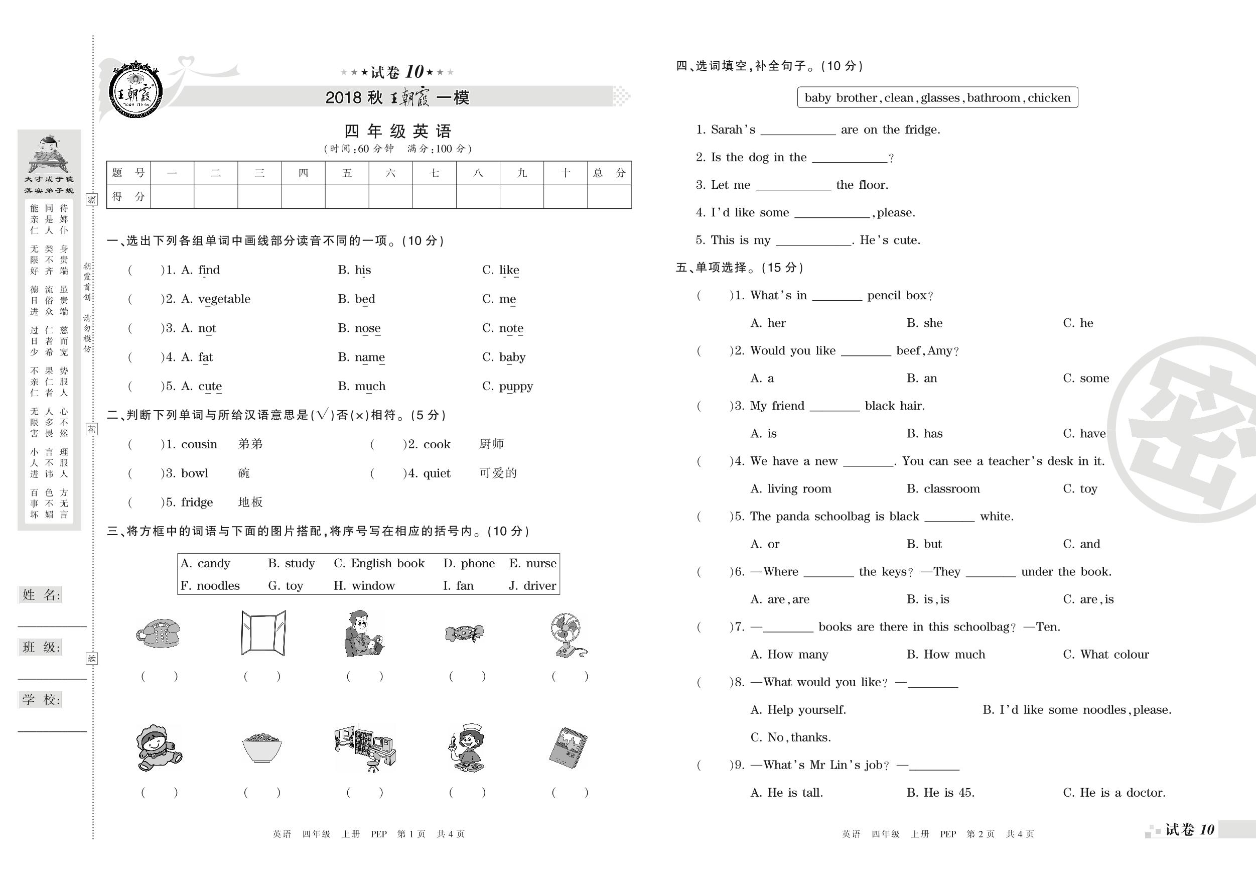 王朝霞期末模拟卷四年级上册英语(PEP版)_R210807101735【10】