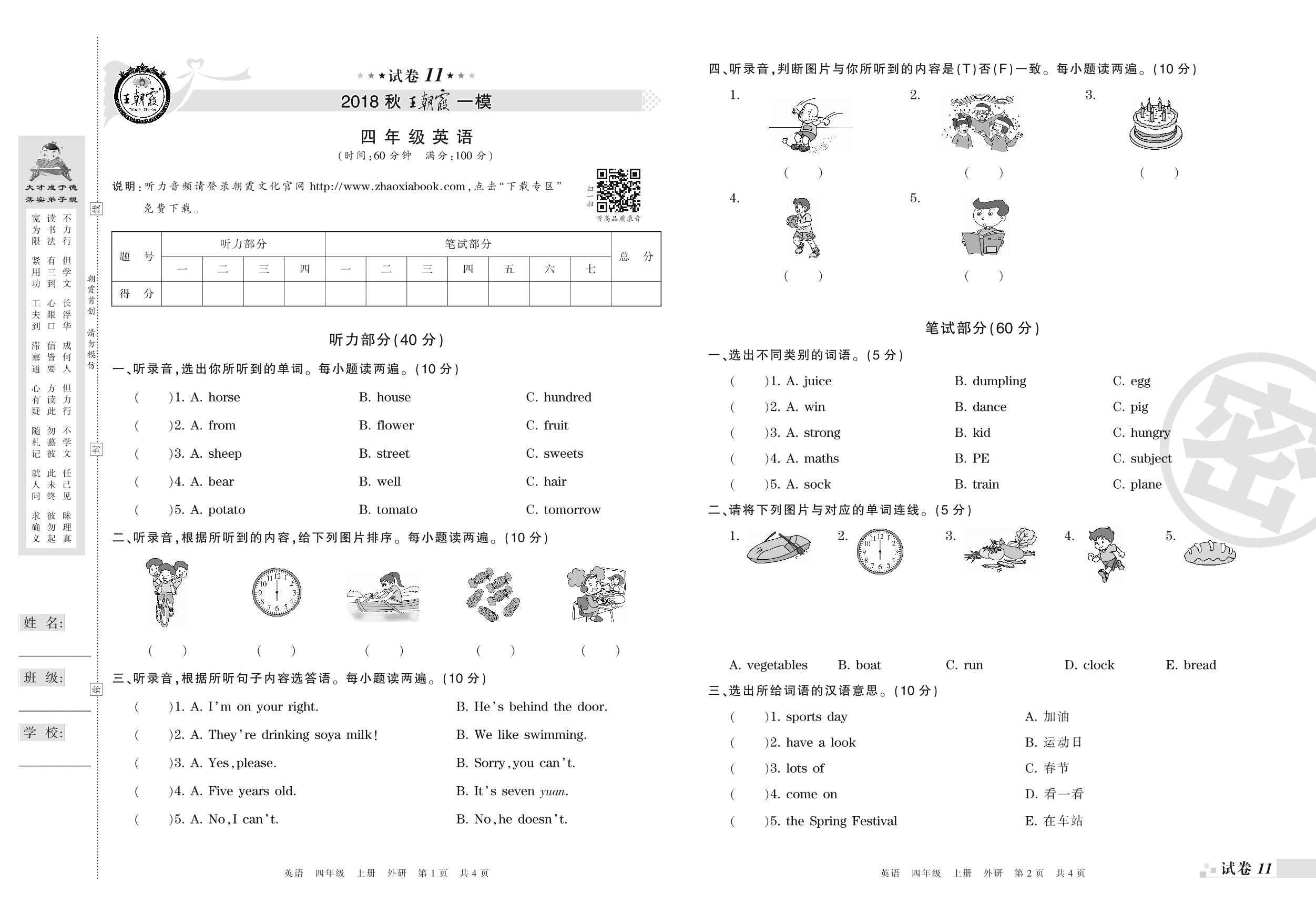 王朝霞期末模拟卷四年级上册英语(外研版)_R210807101910【11】