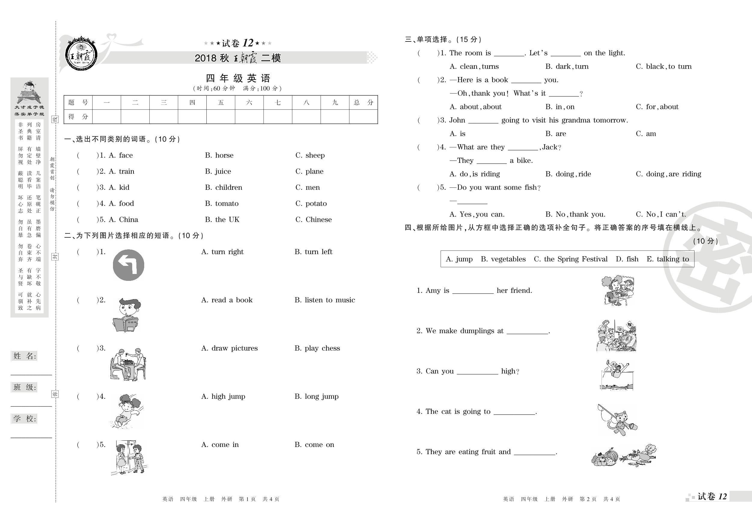 王朝霞期末模拟卷四年级上册英语(外研版)_R210807101917【12】