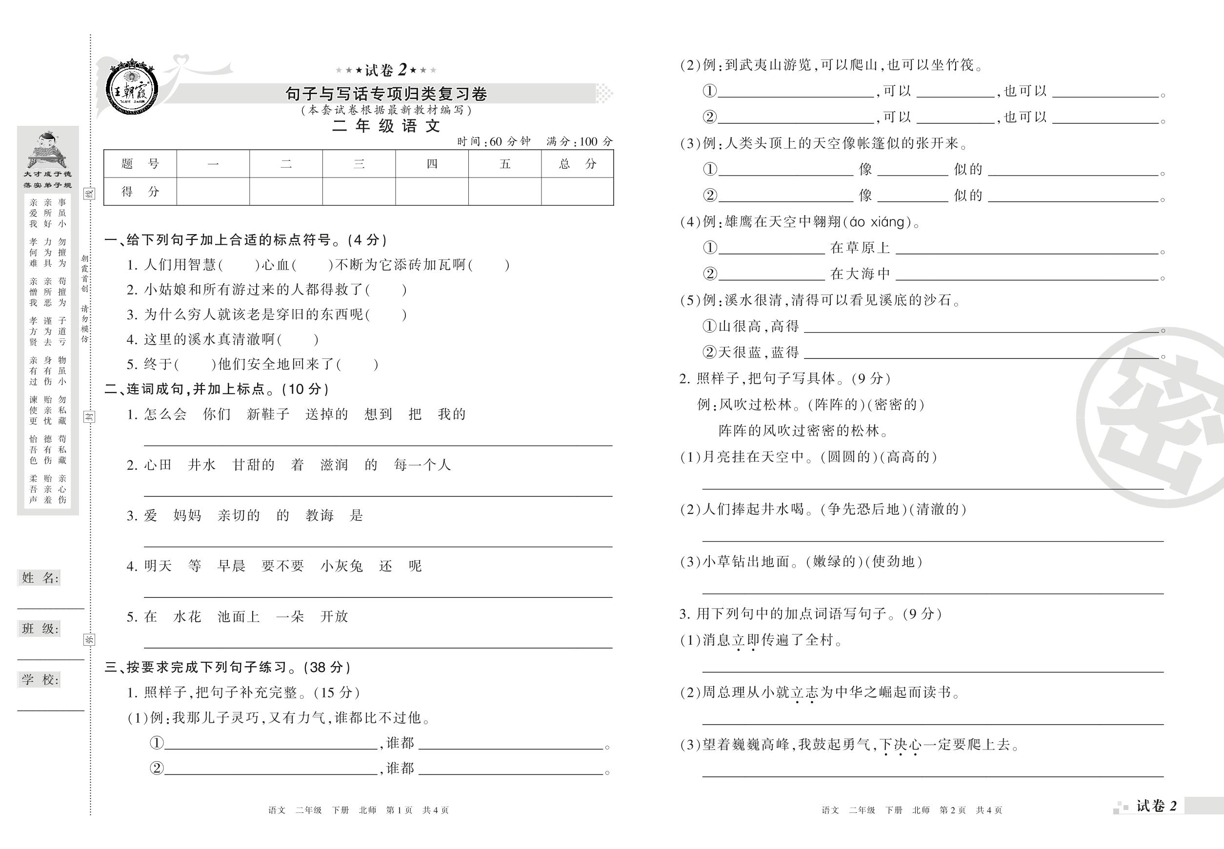 王朝霞期末专项卷——句子与写话专项归类复习卷二年级下册语文(北师版)_R21080181618【2】