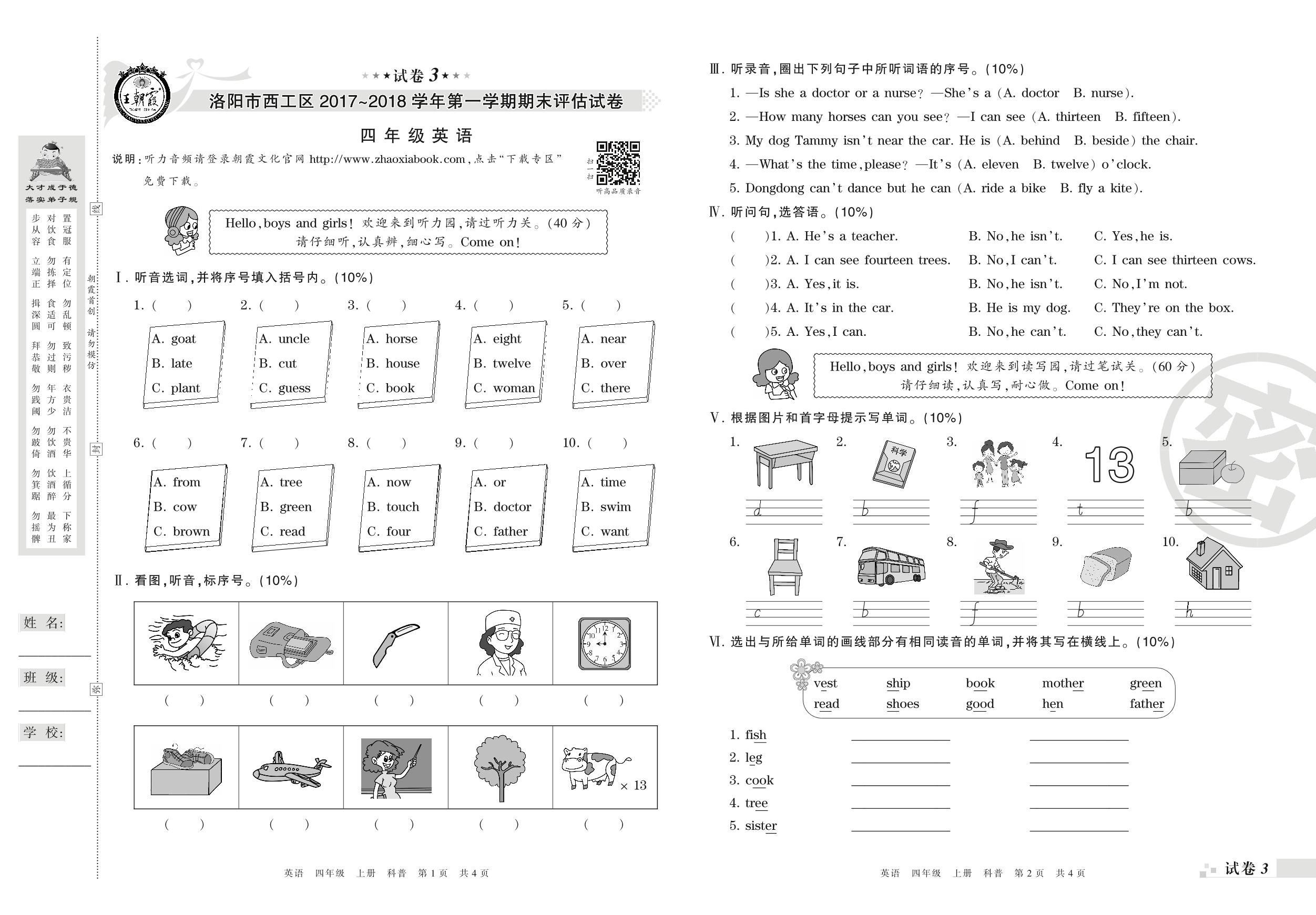 2017-2018学年第一学期洛阳市西工区四年级英语试卷(科普版)【3】