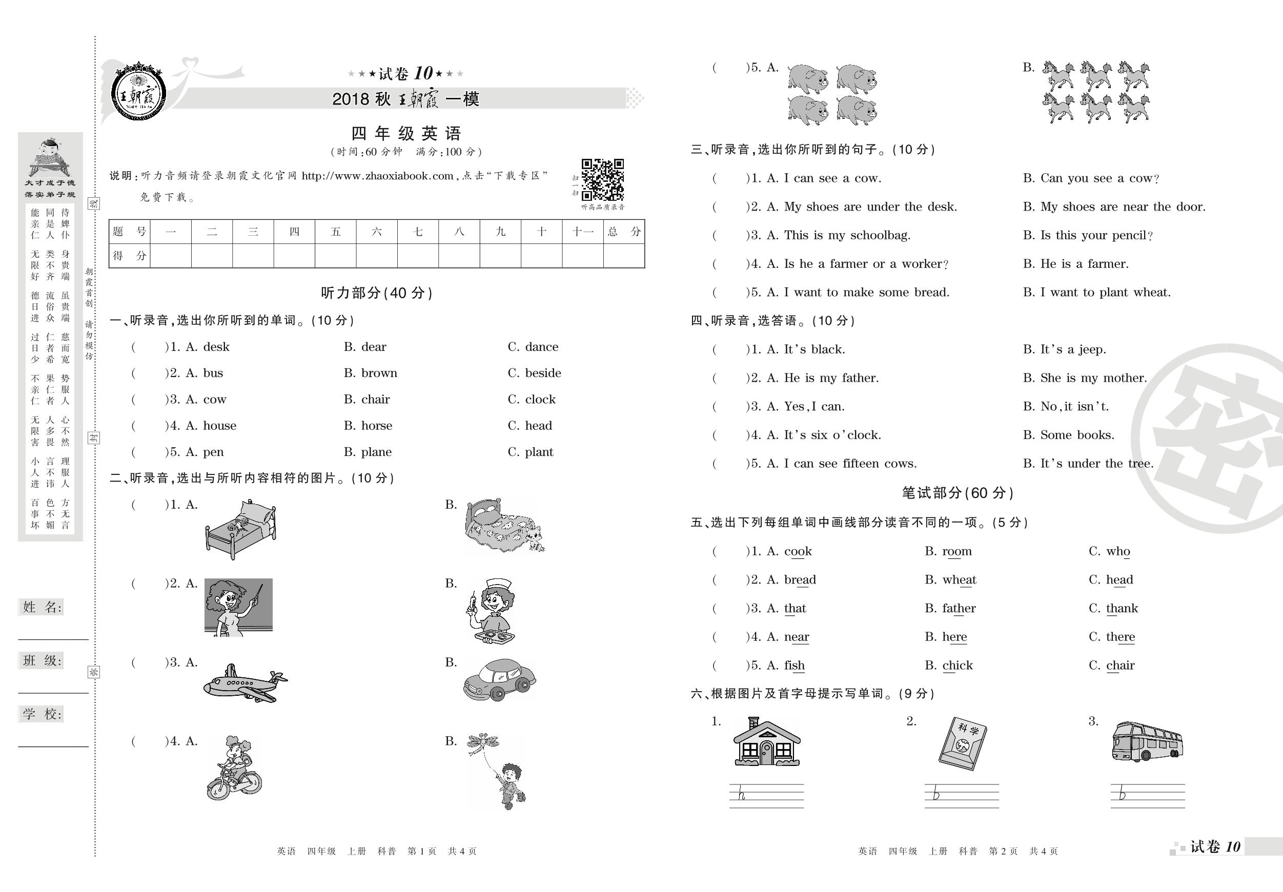王朝霞期末模拟卷四年级上册英语(科普版)_R210807102033【10】