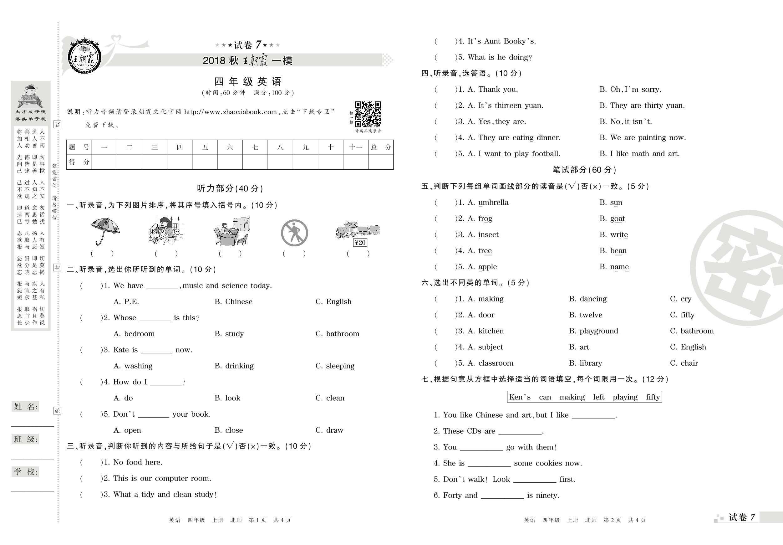 王朝霞期末模拟卷四年级上册英语(北师版)_R210807102238【7】