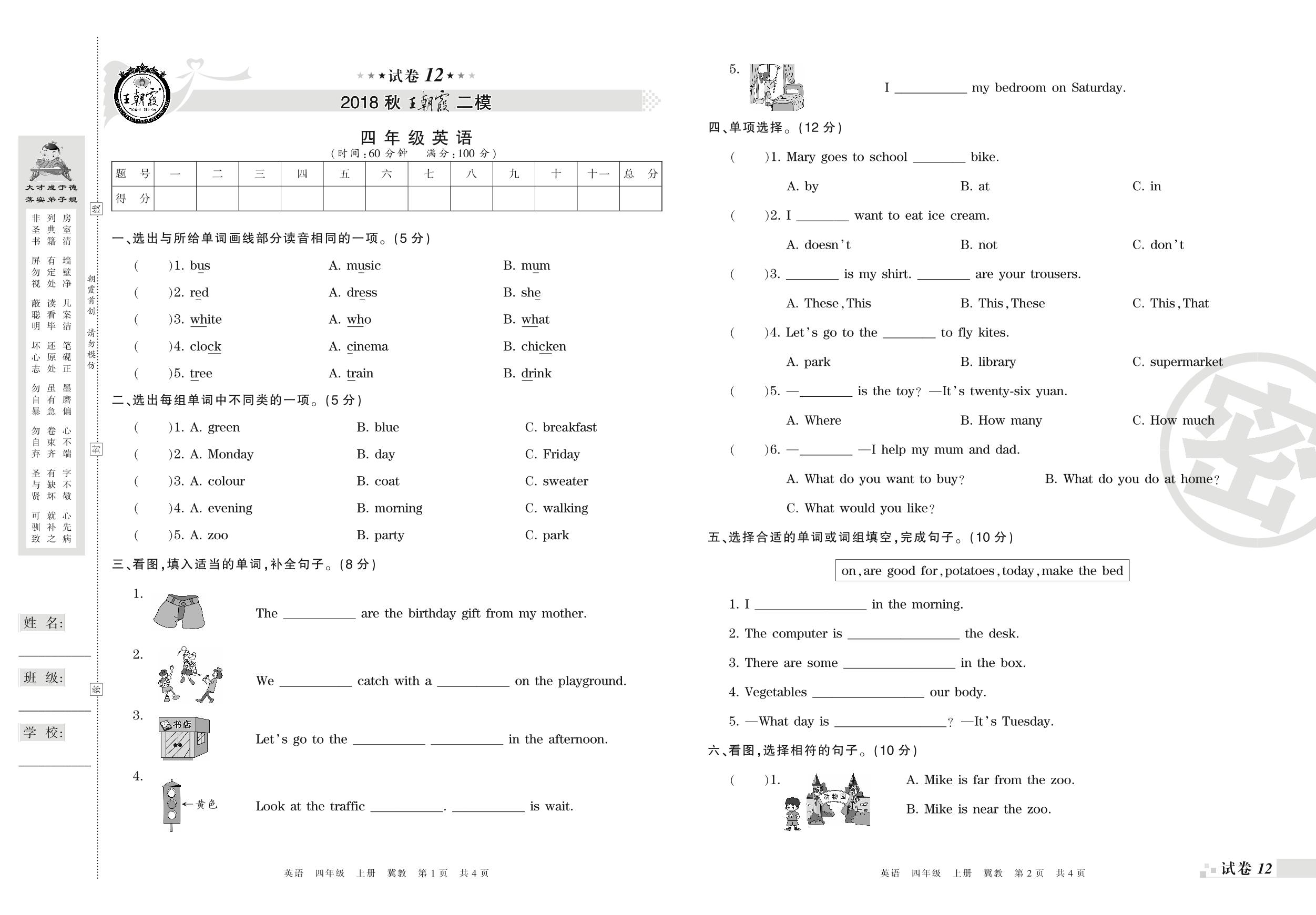 王朝霞期末模拟卷四年级上册英语(冀教版)_R210807102310【12】