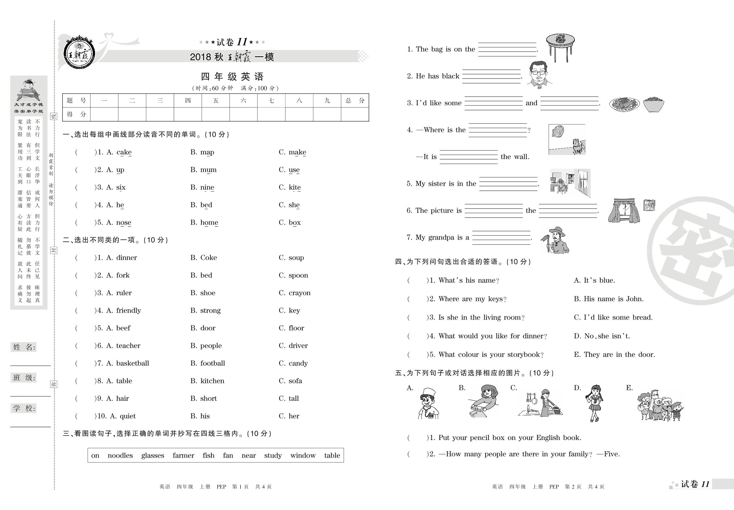王朝霞期末模拟卷四年级上册英语(PEP版)_R210807102442【11】