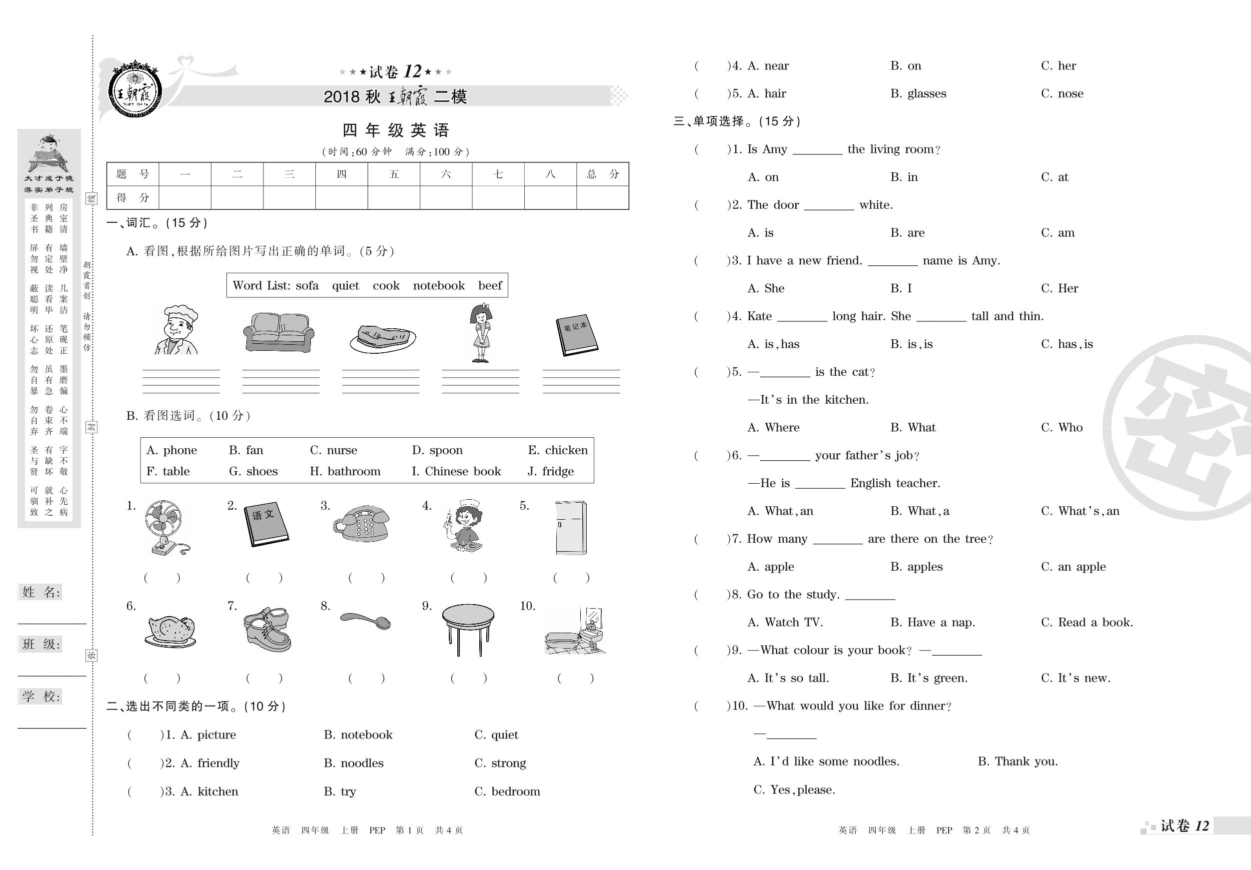 王朝霞期末模拟卷四年级上册英语(PEP版)_R210807102448【12】