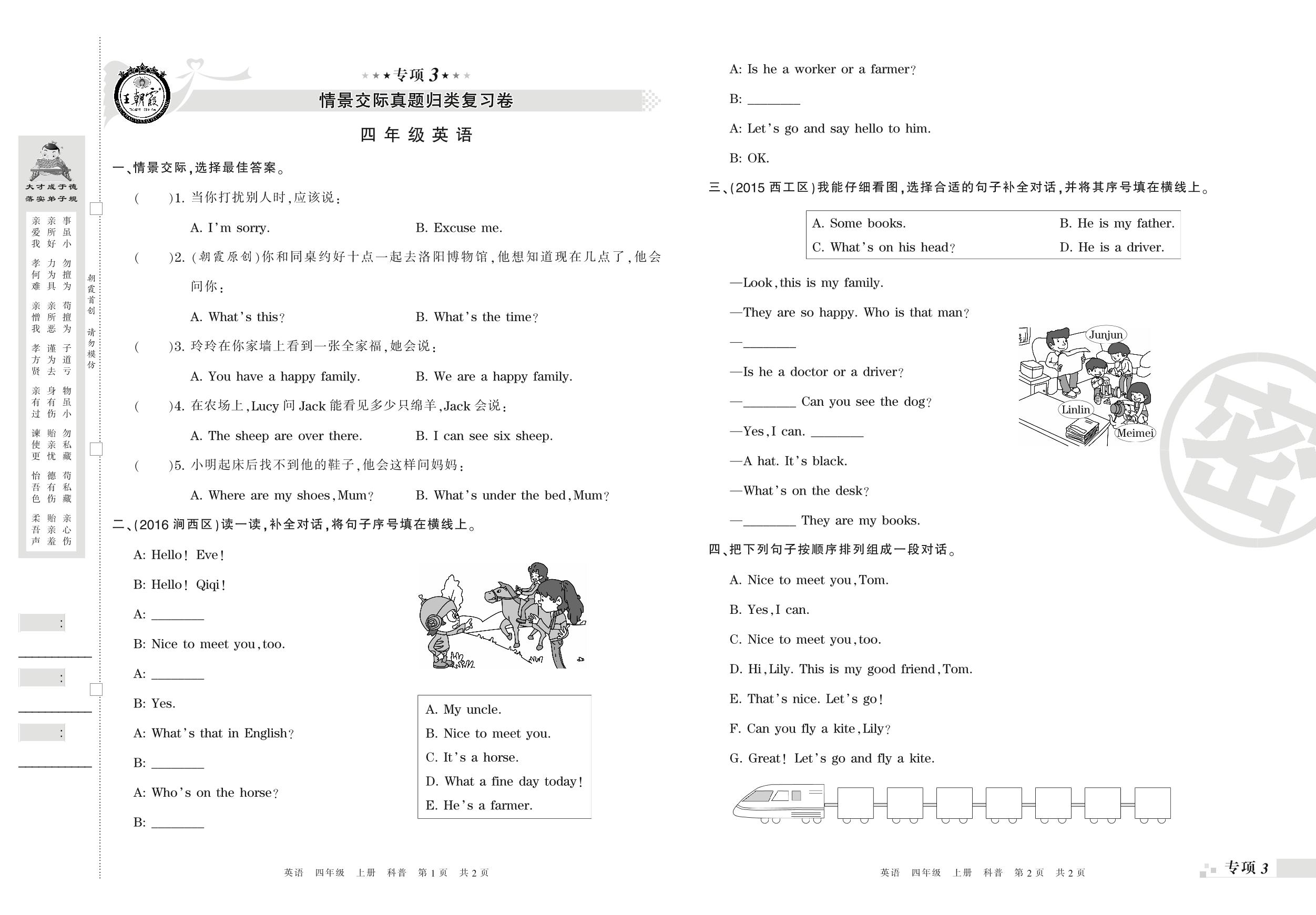 王朝霞期末专项卷——情景交际、阅读理解真题归类复习四年级上册英语(科普版)_R210807102640【0】