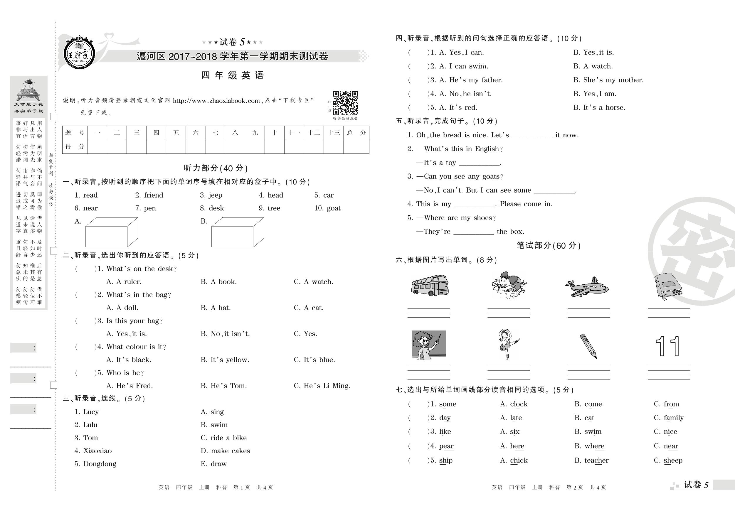 2017-2018学年第一学期洛阳市瀍河区四年级英语试卷(科普版)【5】