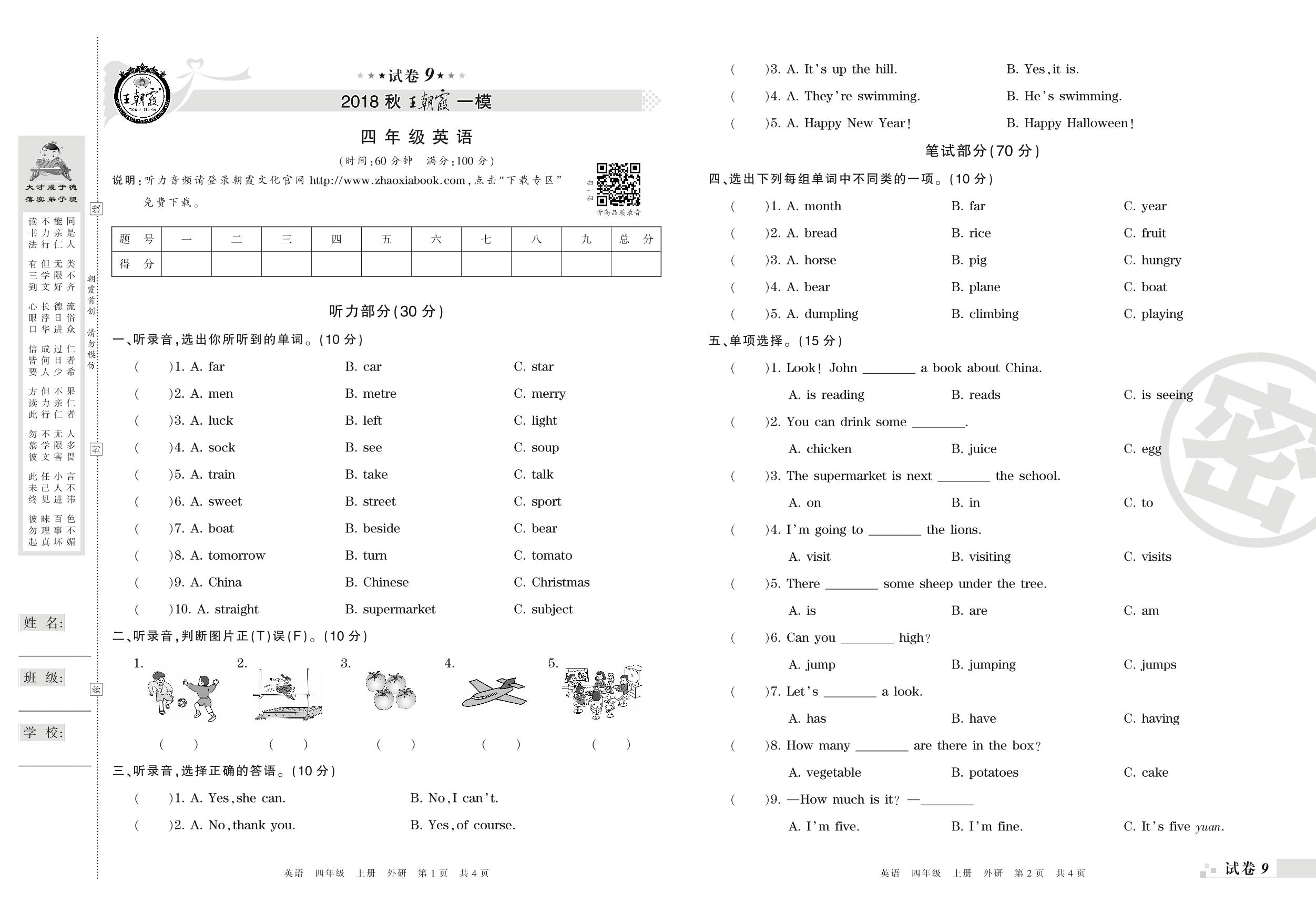 王朝霞期末模拟卷四年级上册英语(外研版)_R210807102728【9】