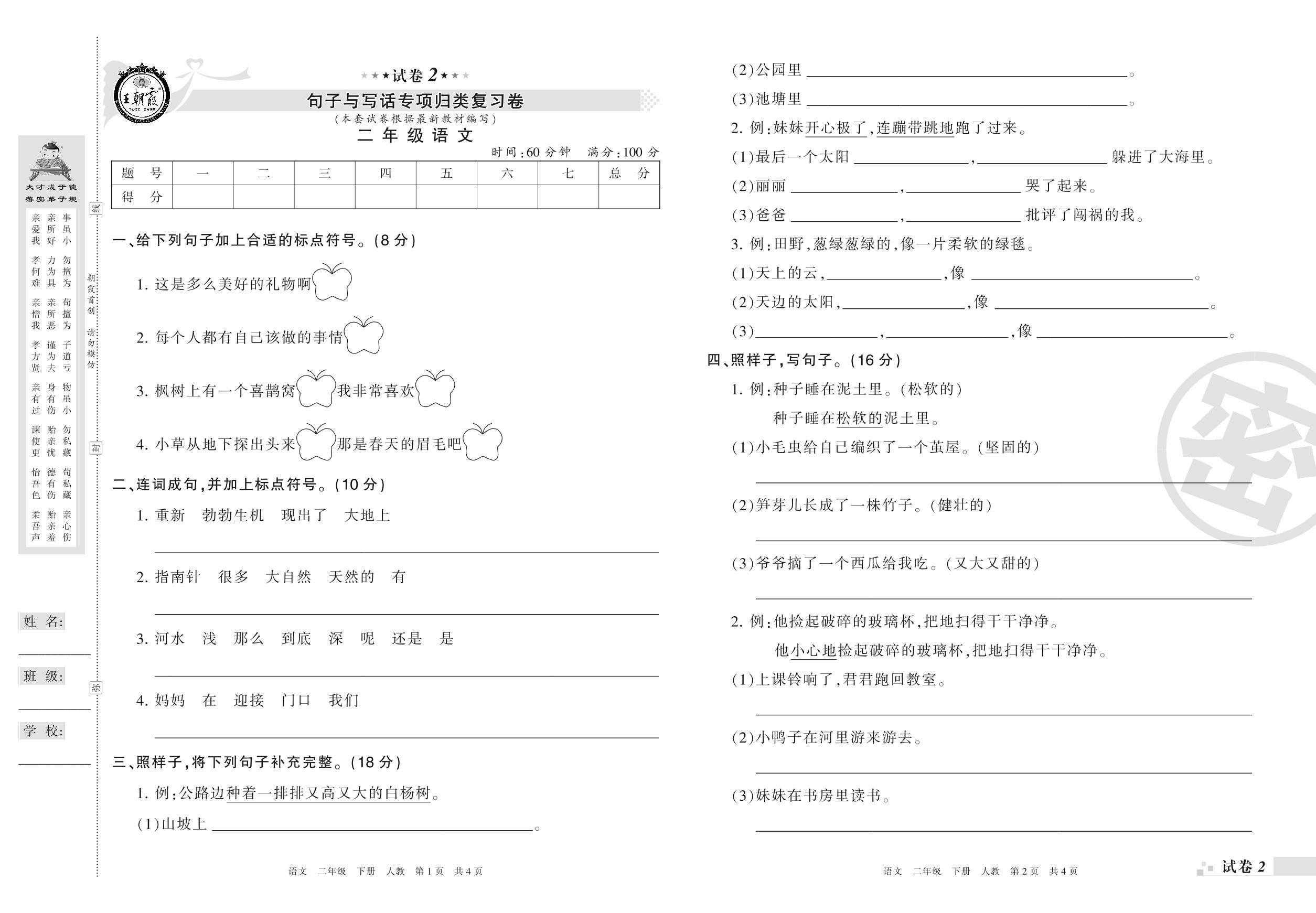 王朝霞期末专项卷——句子与写话专项归类复习卷二年级下册语文(人教版)_R21080181655【2】