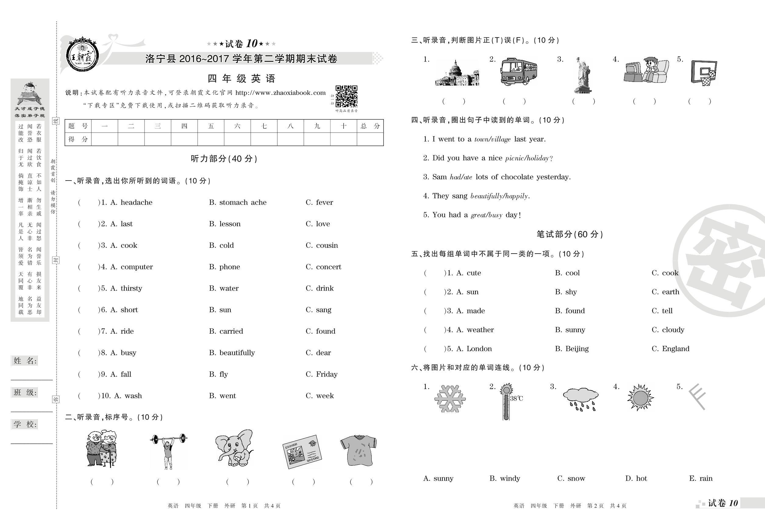 2016-2017学年第二学期洛阳市洛宁县四年级英语试卷(外研版)【10】