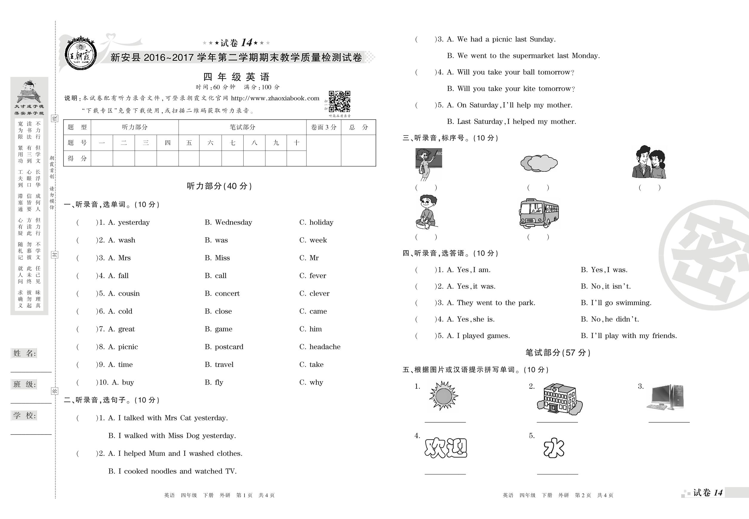 2016-2017学年第二学期洛阳市新安县四年级英语试卷(外研版)【14】