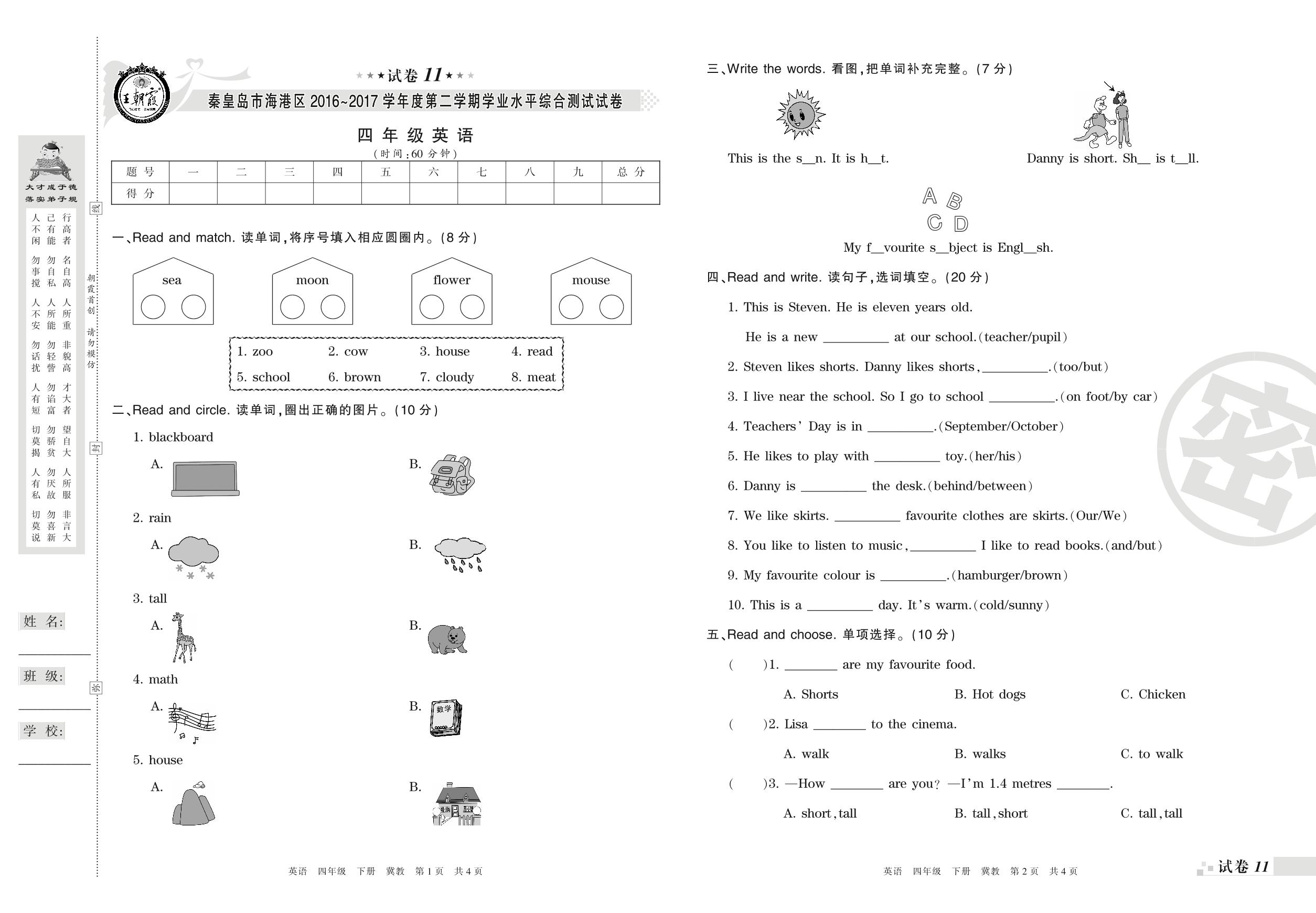 2016-2017学年第二学期秦皇岛市海港区四年级英语试卷(冀教版)【11】